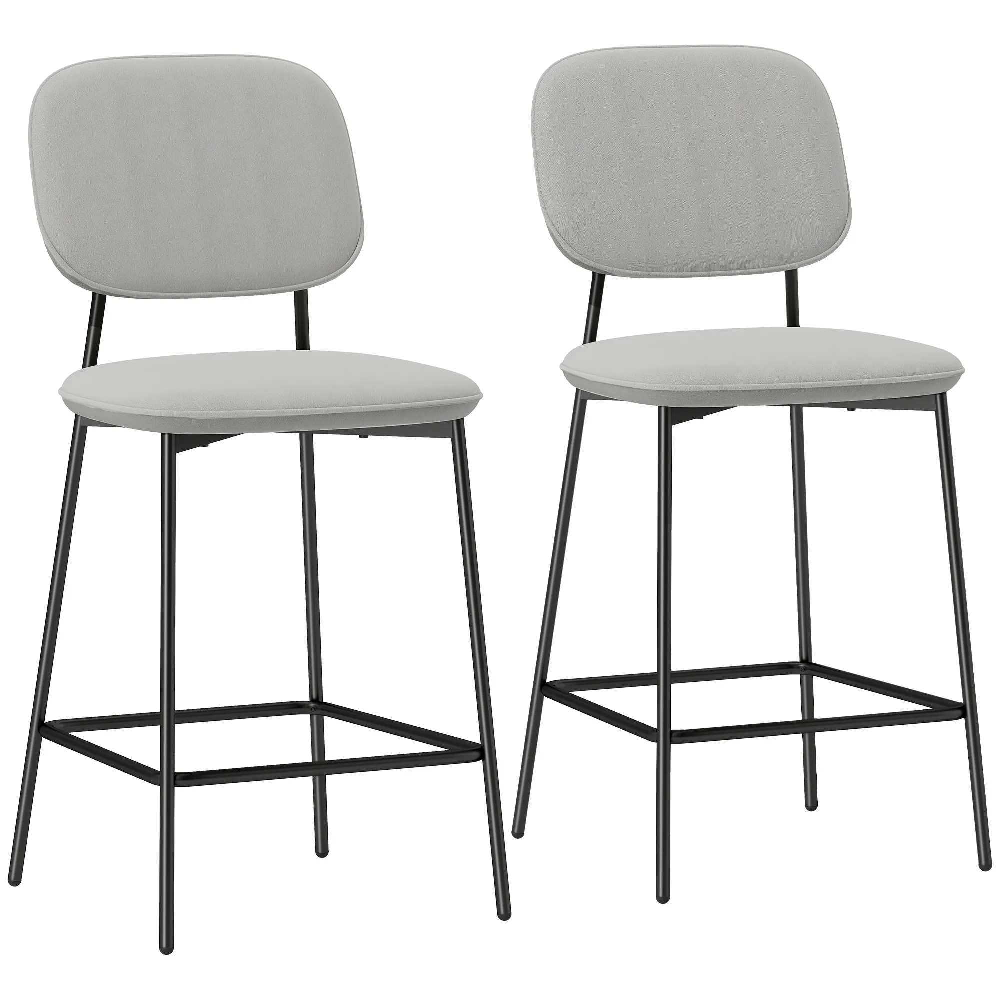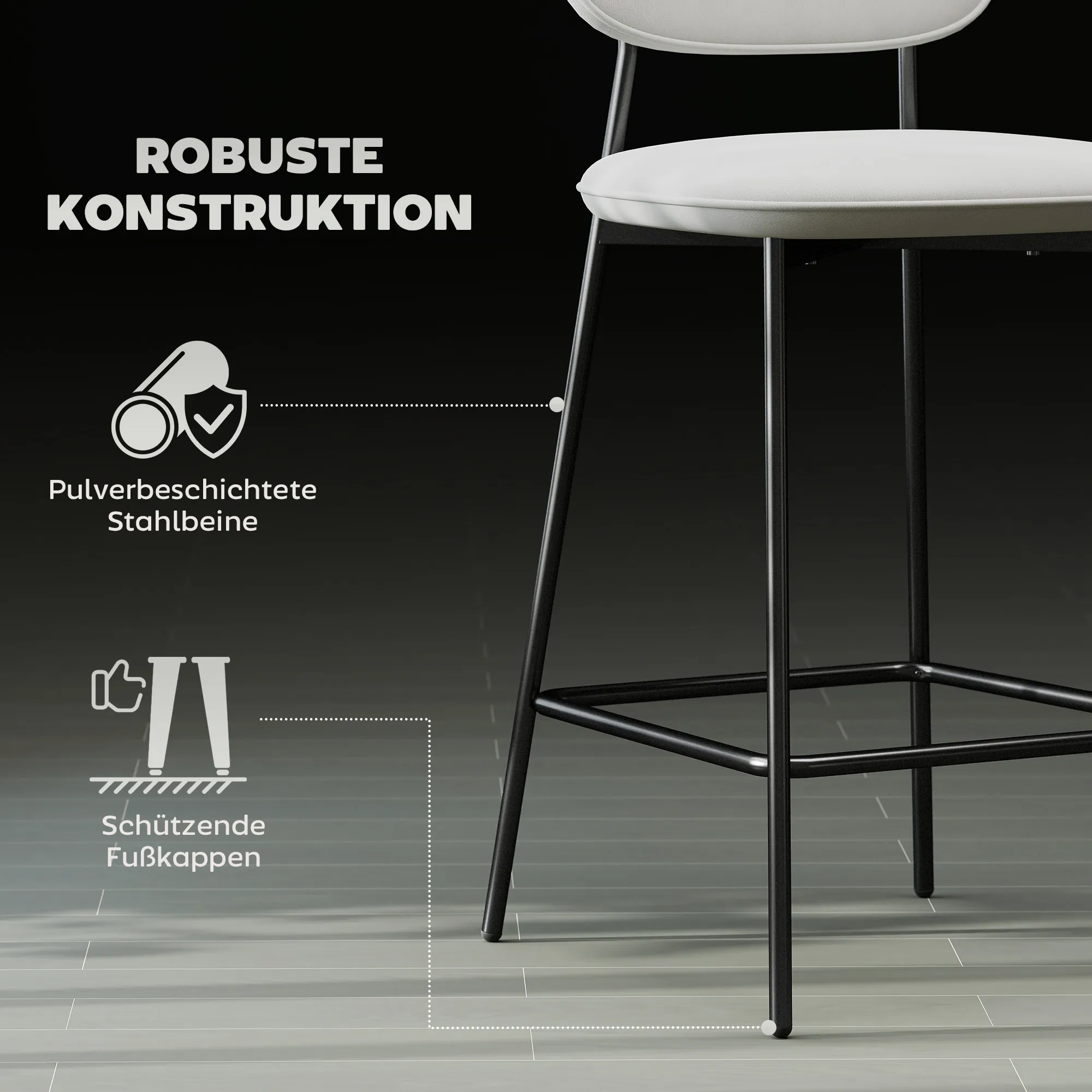 Ervaar het ultieme comfort van de hoge barkrukken van [BRAND NAME]. Deze set van twee barkrukken is ideaal voor het completeren van je keuken of barzone. De fluweelzachte bekleding en dik schuimkussen zorgen voor het hoogste zitcomfort, terwijl de robuuste stalen constructie stabiliteit garandeert. Het moderne zwart-grijze kleurenschema geeft een elegante touch aan je interieur.