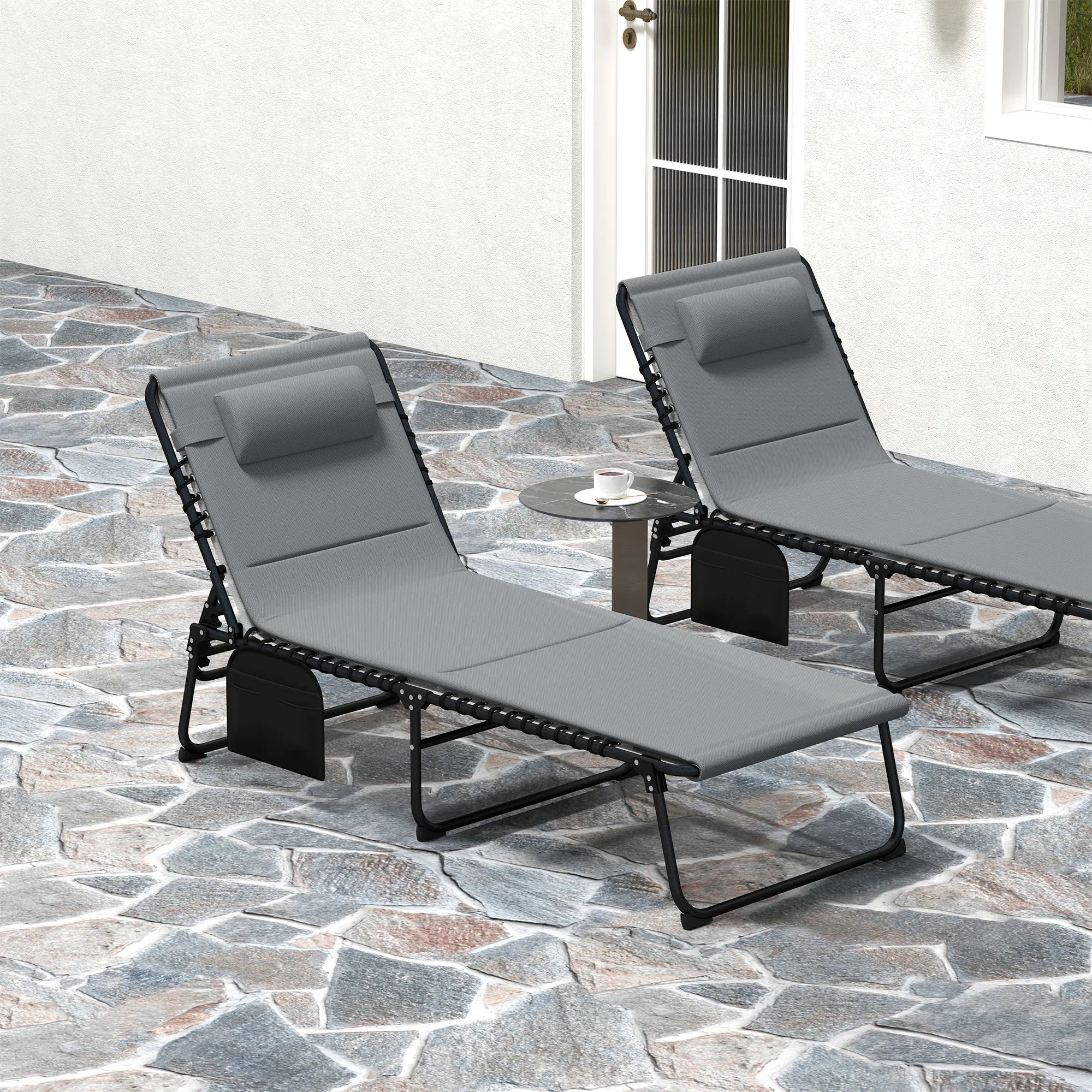 2-delige Set Opvouwbare Zonneligstoel Tuinligstoel Met Hoofdkussen 5-voudig Verstelbare Rugleuning Zijtas Donkergrijs