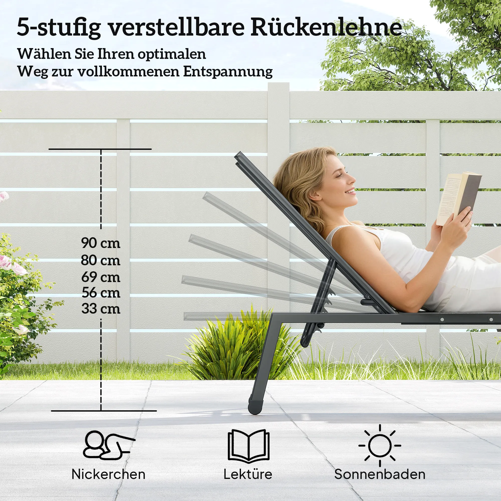 • Comfortabel en verstelbaar: vijftraps verstelbare rugleuning voor totale ontspanning