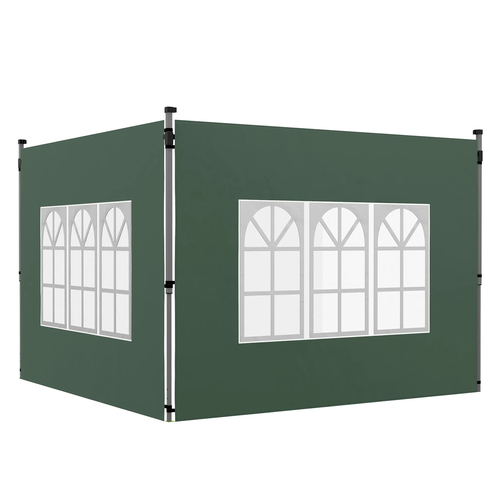 Geef jouw tuinpaviljoen een nieuwe look met deze zijwanden van [BRAND NAME]. De set bestaat uit twee wanden van stevig Oxford-stof en is geschikt voor de meeste 3×3 m of 3×4 m paviljoens. De ramen in de wanden laten veel licht binnen en bieden een mooi uitzicht naar buiten. Dankzij de eenvoudige bevestiging met riemen is het installeren een fluitje van een cent. Let op: het paviljoenframe is niet inbegrepen, alleen de wanden.