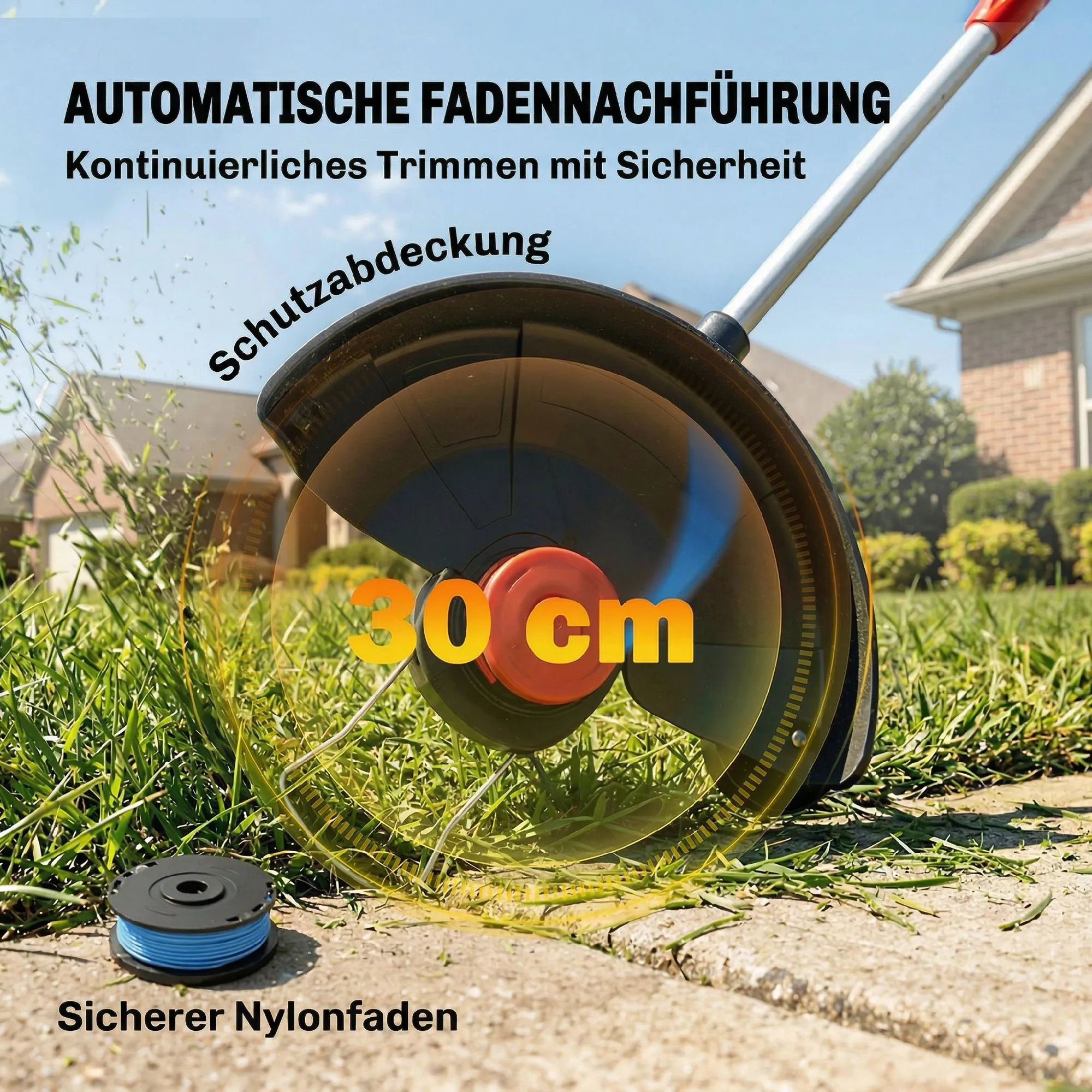 • Efficiënt trimmen: krachtige motor met 30 cm snijbreedte voor snel gazononderhoud