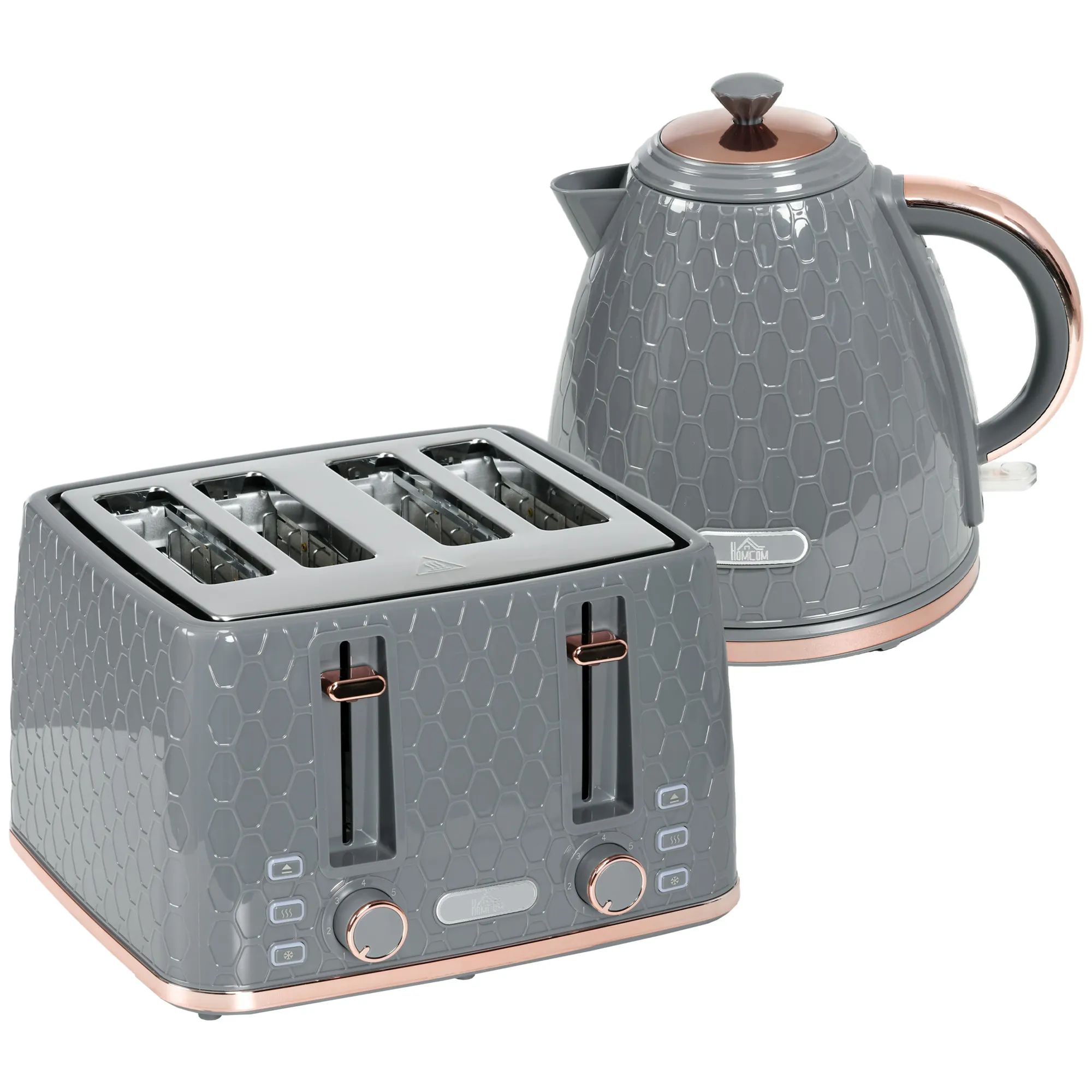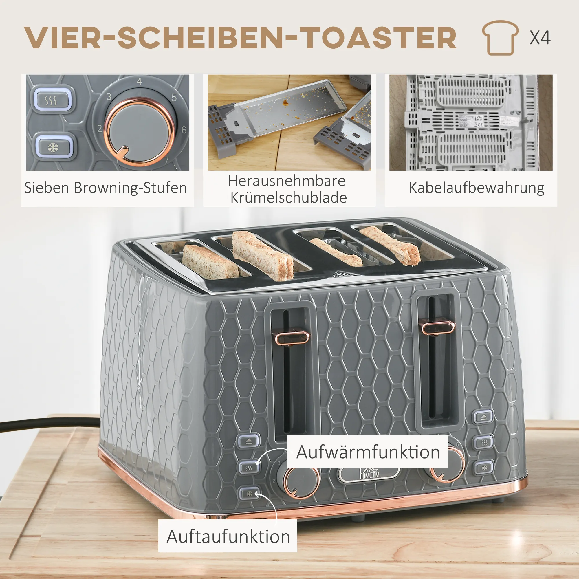 2-in-1 Keukenset, Broodrooster En Waterkoker, Meerdere Opties, 1,7 L, 4 Toastplakken Tegelijk, Kunststof, Grijs
