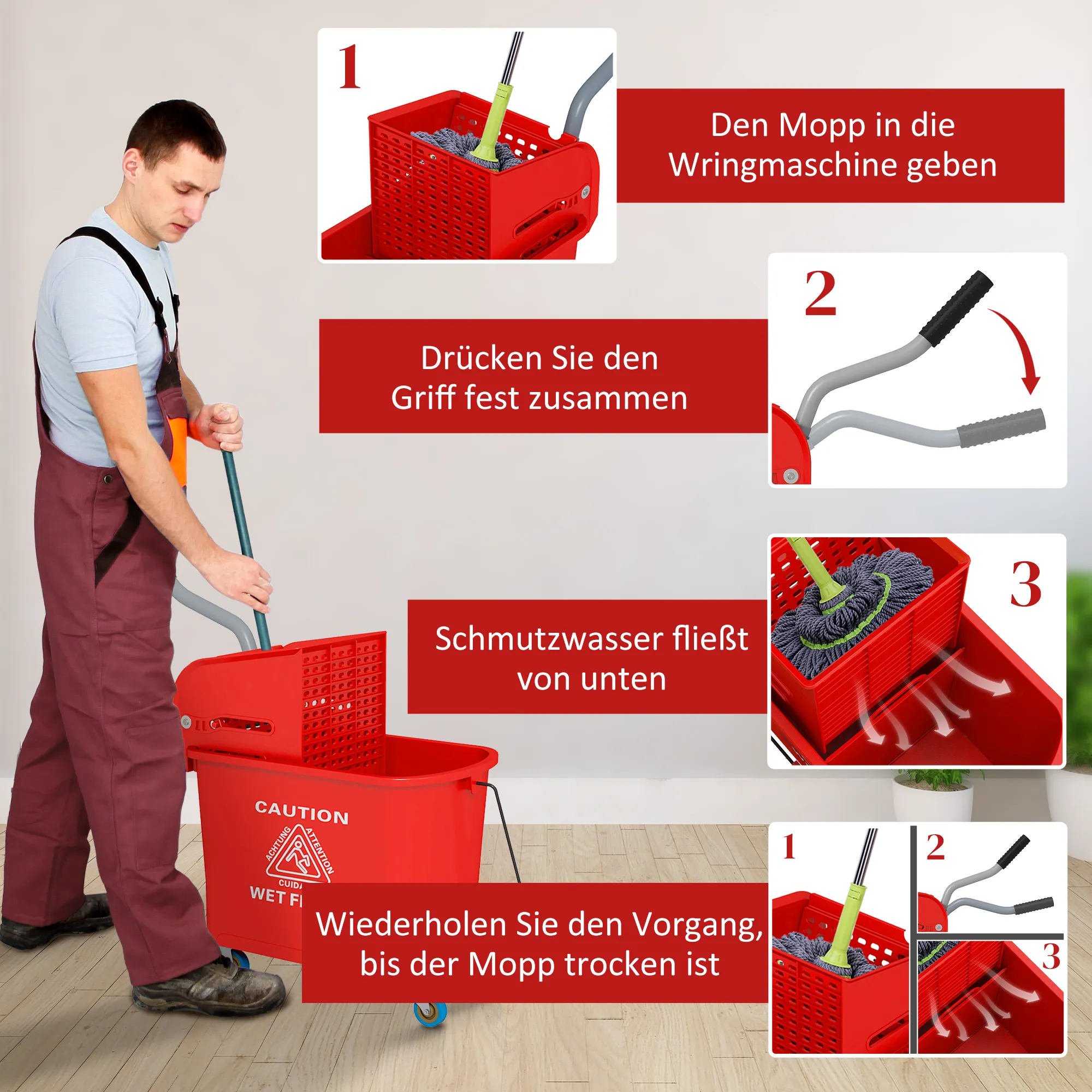- Handig in gebruik: verrijdbaar ontwerp en afneembare wringer voor gemakkelijk vullen