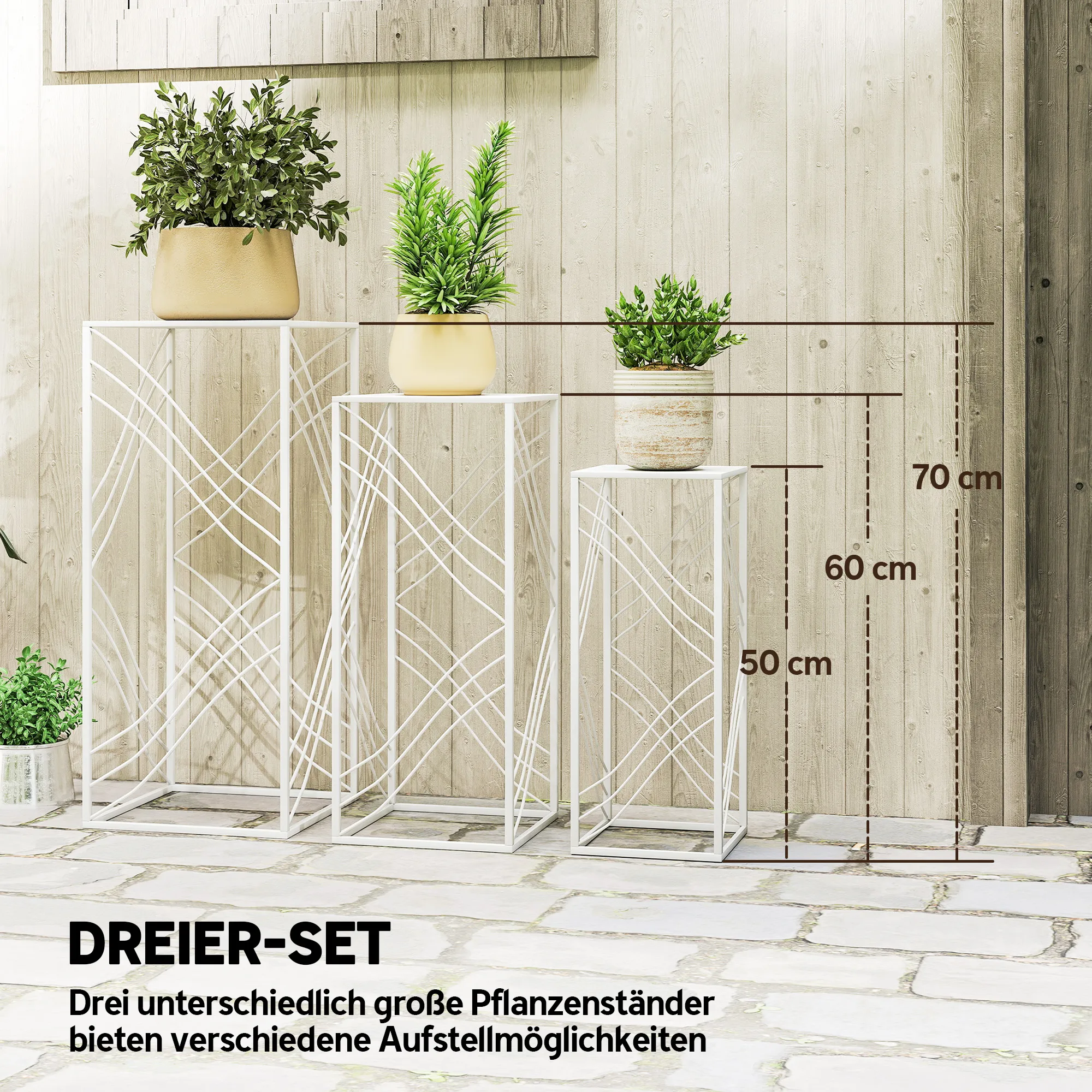Verrijk je omgeving met de [BRAND NAME] plantenstandaards, verkrijgbaar in drie verschillende maten. Het stijlvolle ontwerp geeft jouw feestdecoratie een elegante uitstraling. Gemaakt van gepoedercoat metaal, zijn deze bloemenstandaards water- en roestbestendig, ideaal voor zowel binnen- als buitengebruik. Perfect voor het presenteren van planten, lantaarns, kunstwerken of decoraties in de woonkamer, op het balkon, terras of in de entree.