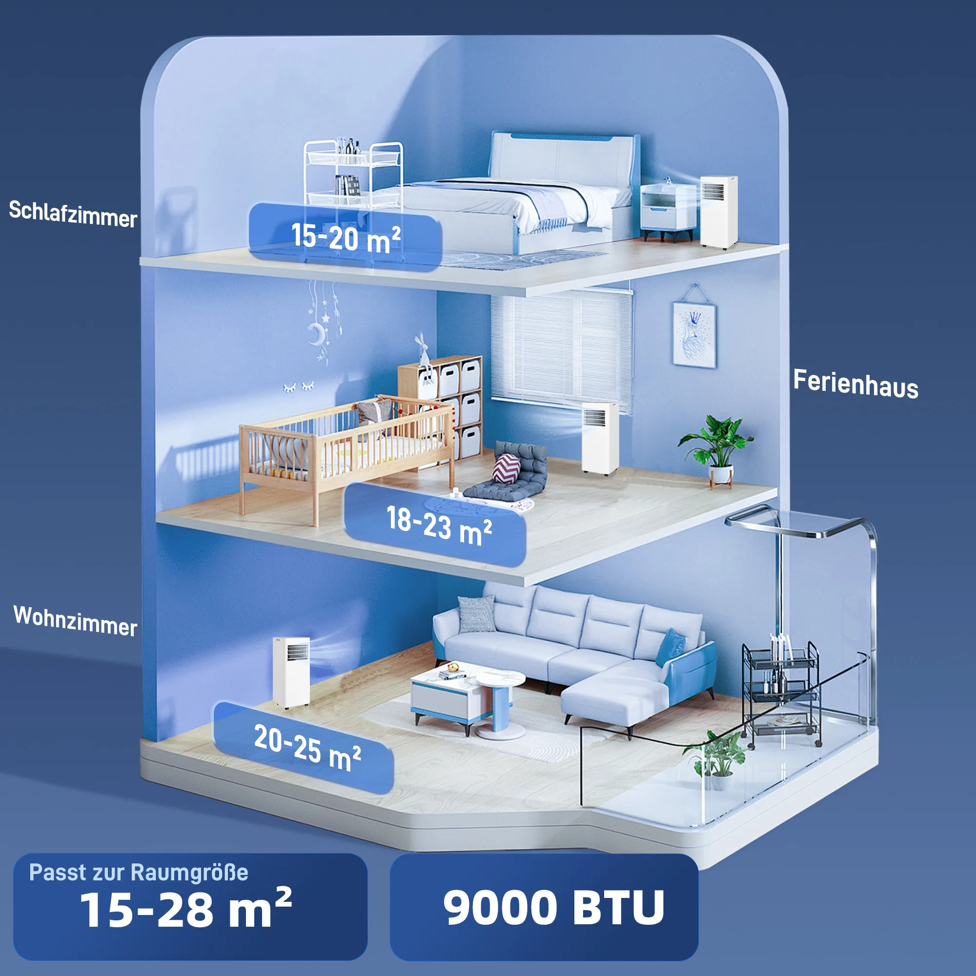 - Koelvermogen: 9.000 BTU/u