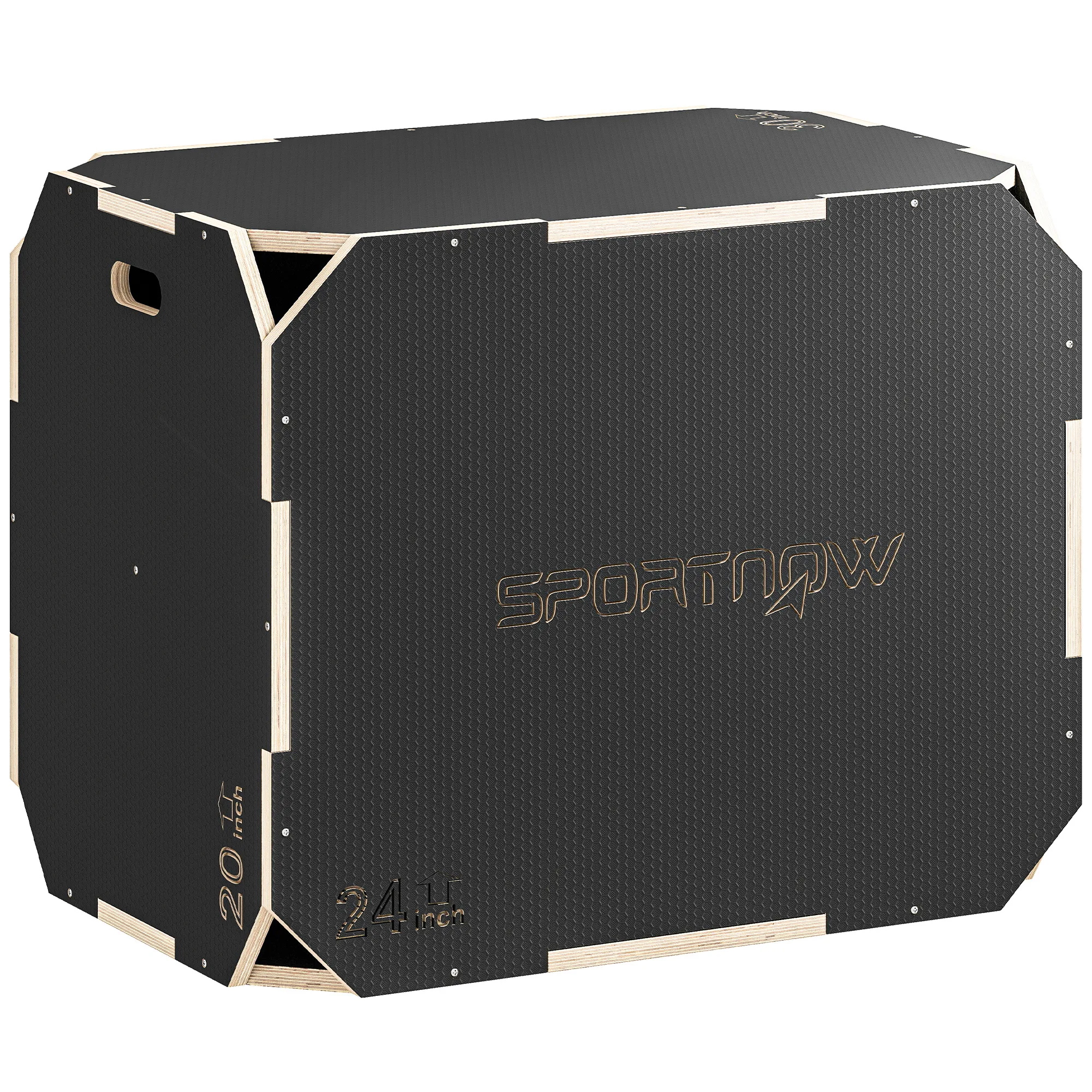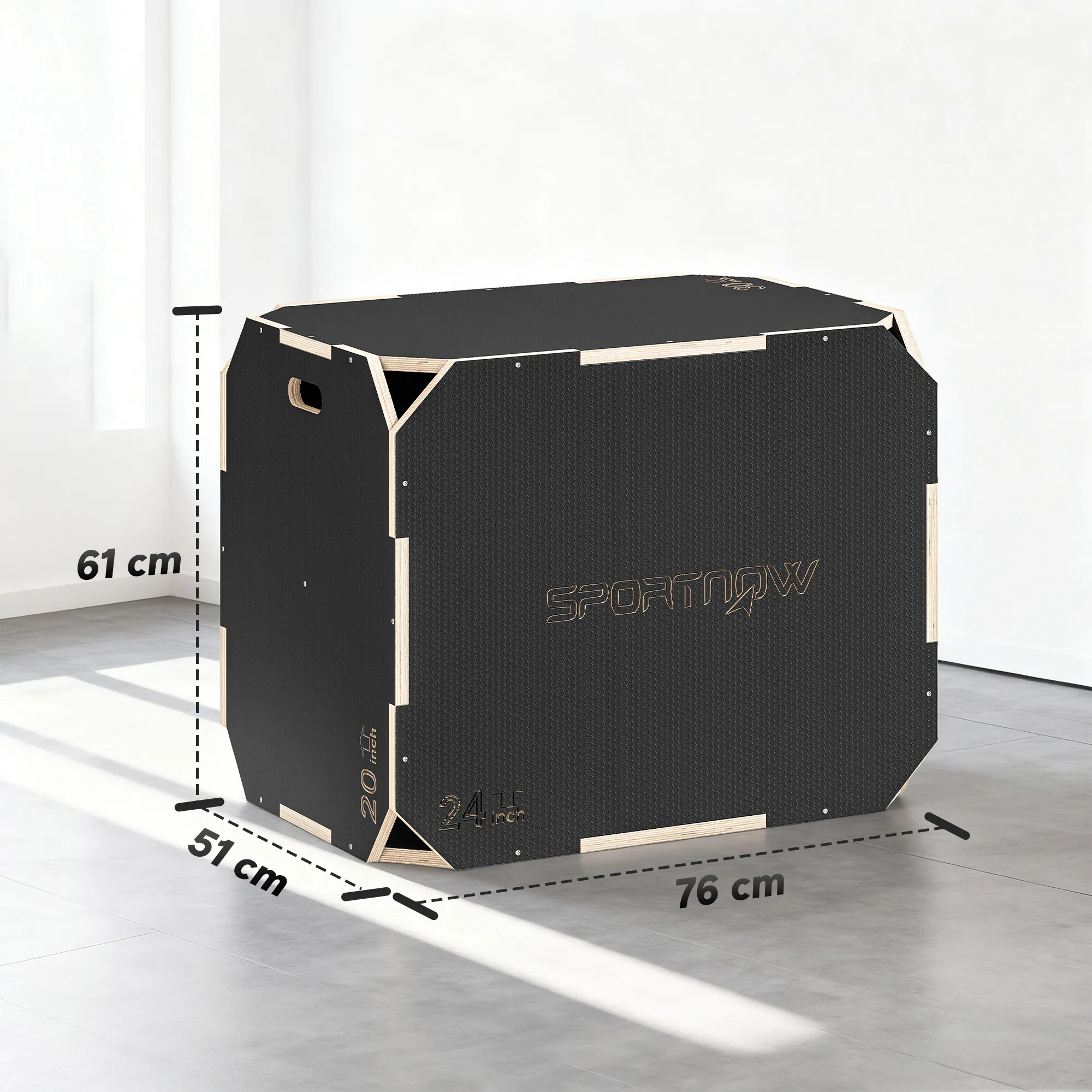 3-in-1 Plyo-Box, Sprungbox Met Handvatopeningen, Voor Thuisfitness En Buitenworkouts, 3 Spronghoogtes, Hout, Zwart