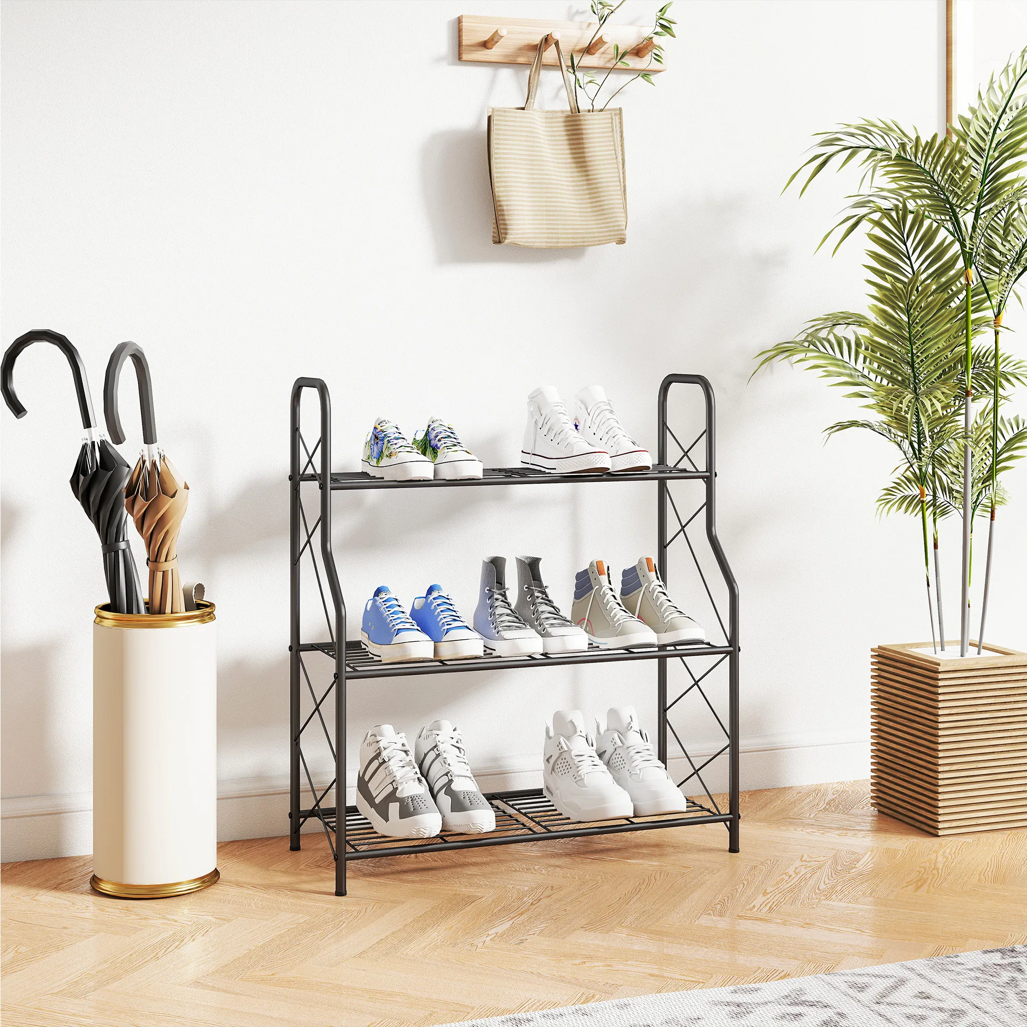 Transformeer je ruimte met de [BRAND NAME] 3-laags plantenstandaard, die optimaal gebruik maakt van zonlicht en zorgt voor perfecte drainage. Het stevige metalen frame met X-steunen beveiligt potten en voorkomt kantelen, terwijl de poedergecoate roosterplanken roestvrij blijven. Licht, stabiel en veelzijdig – perfect voor planten, boeken of decor in je interieur of op je terras.