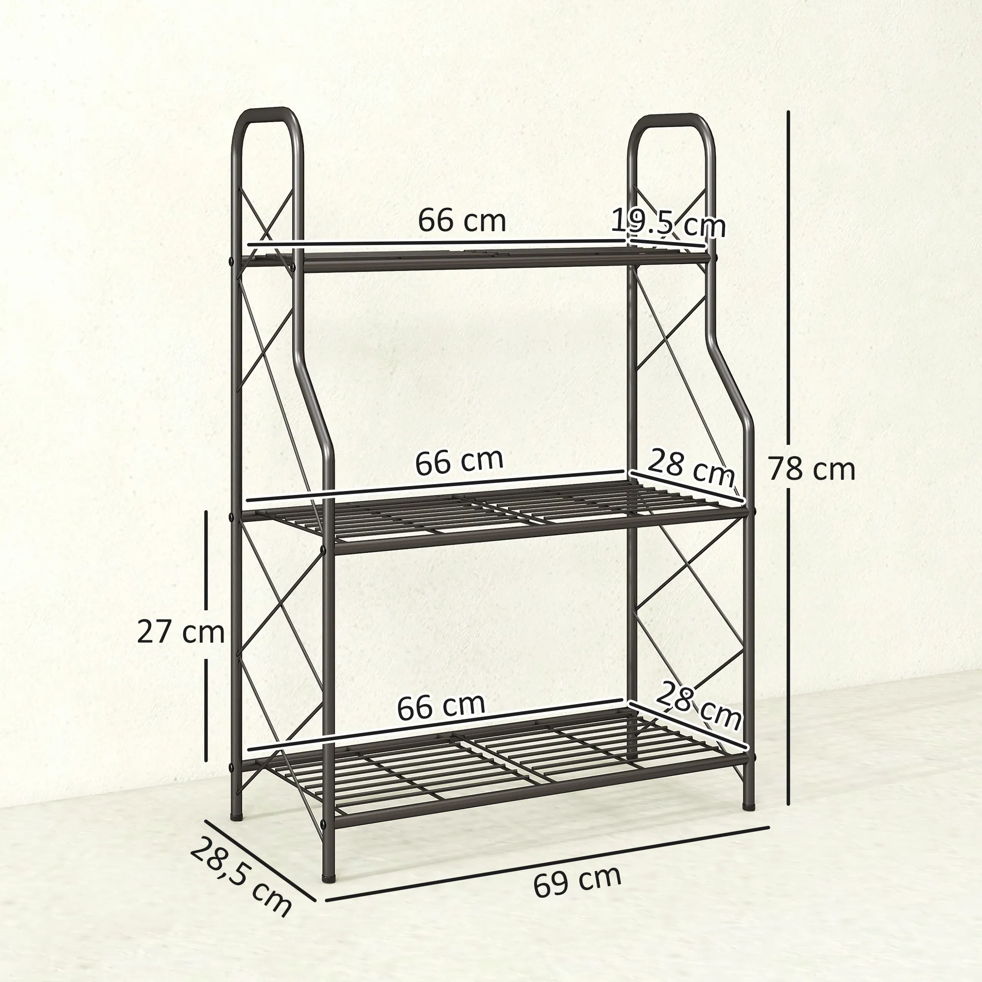 3-laags Plantenstandaard, 78 Cm Hoog Bloemenstandaard Met Handvatten, Metalen Plantenrek Zwart