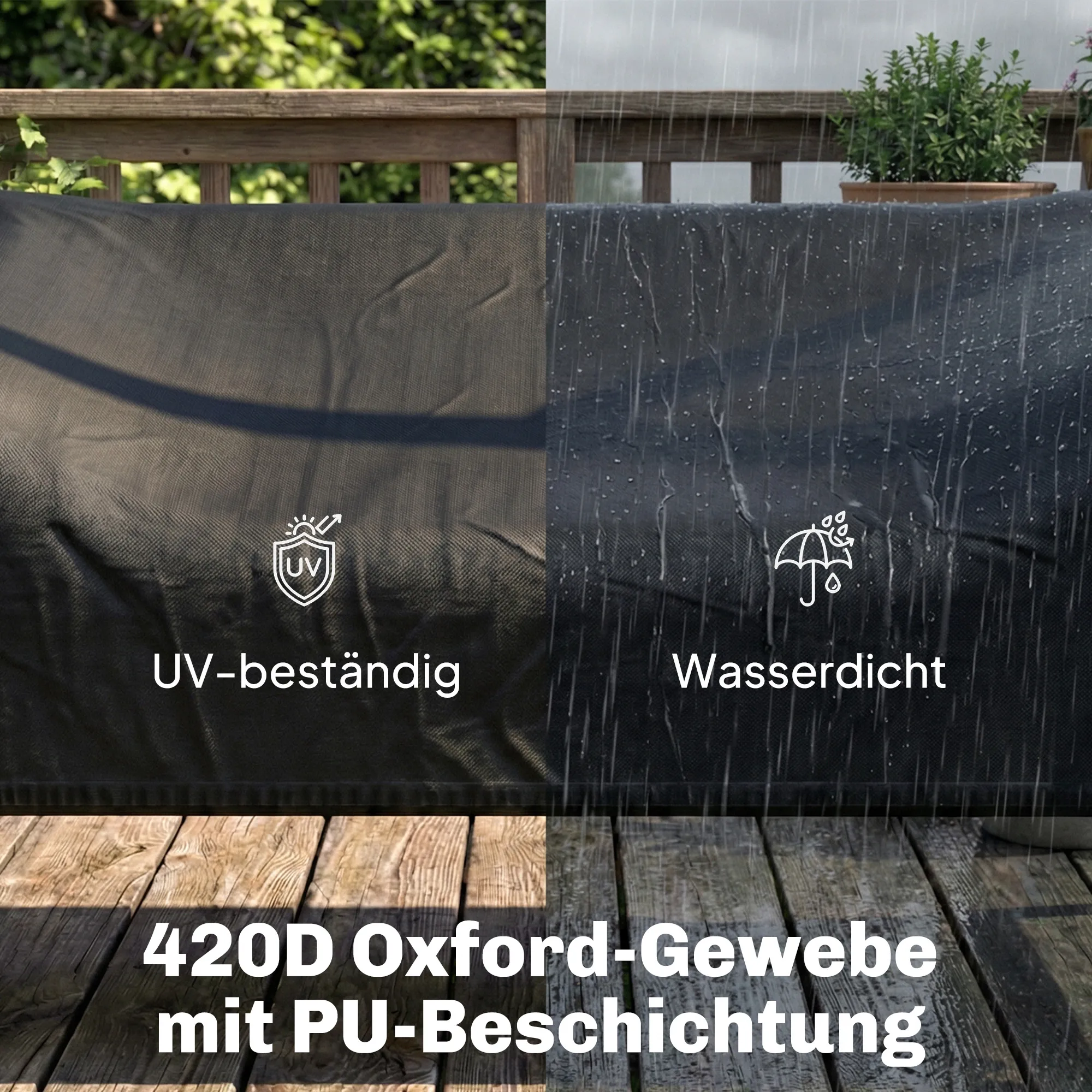 • Duurzame bescherming: waterdichte PU-gecoate Oxford-stof