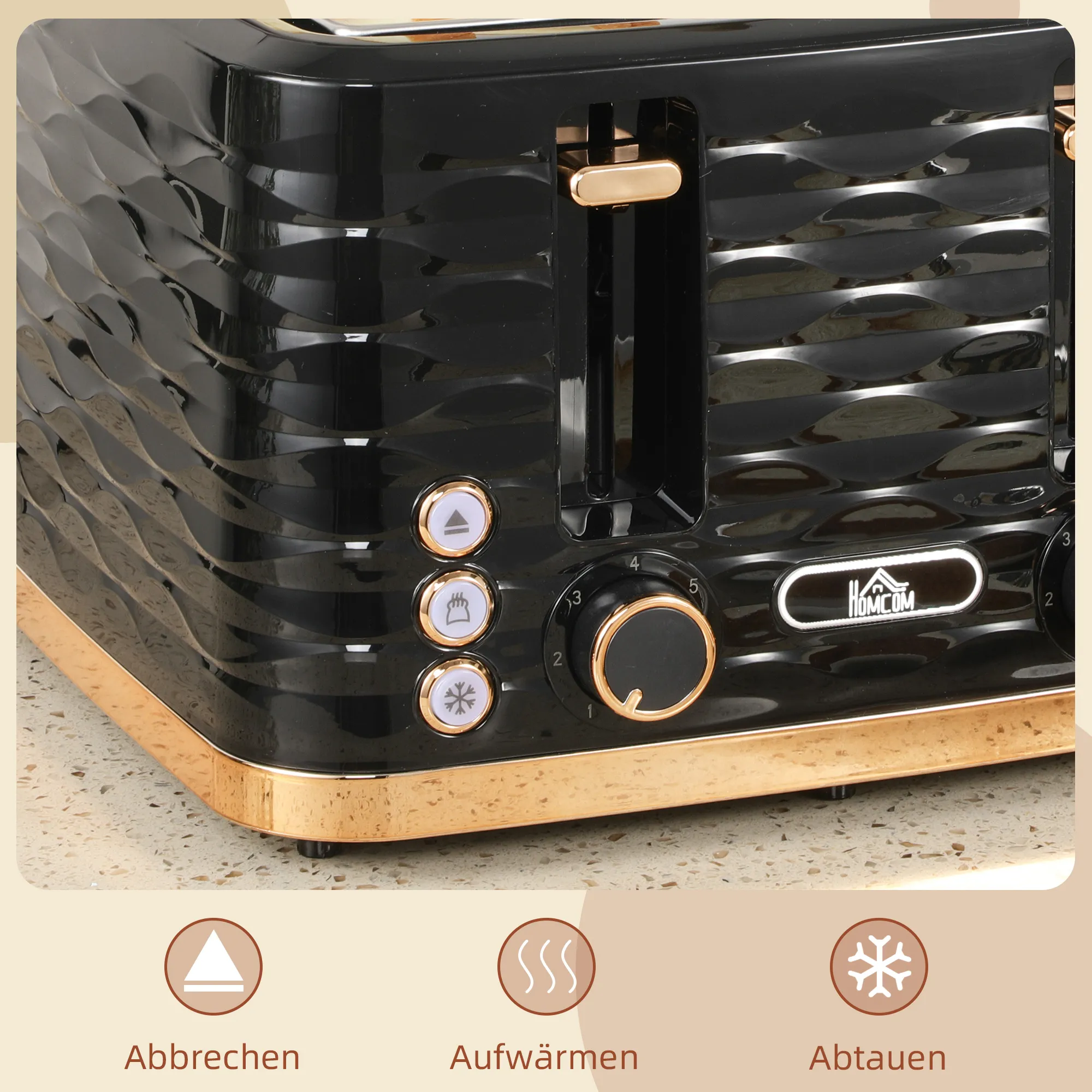 - Elegant design: het mooie golfpatroon van de toaster ziet er geweldig uit op je keukenaanrecht