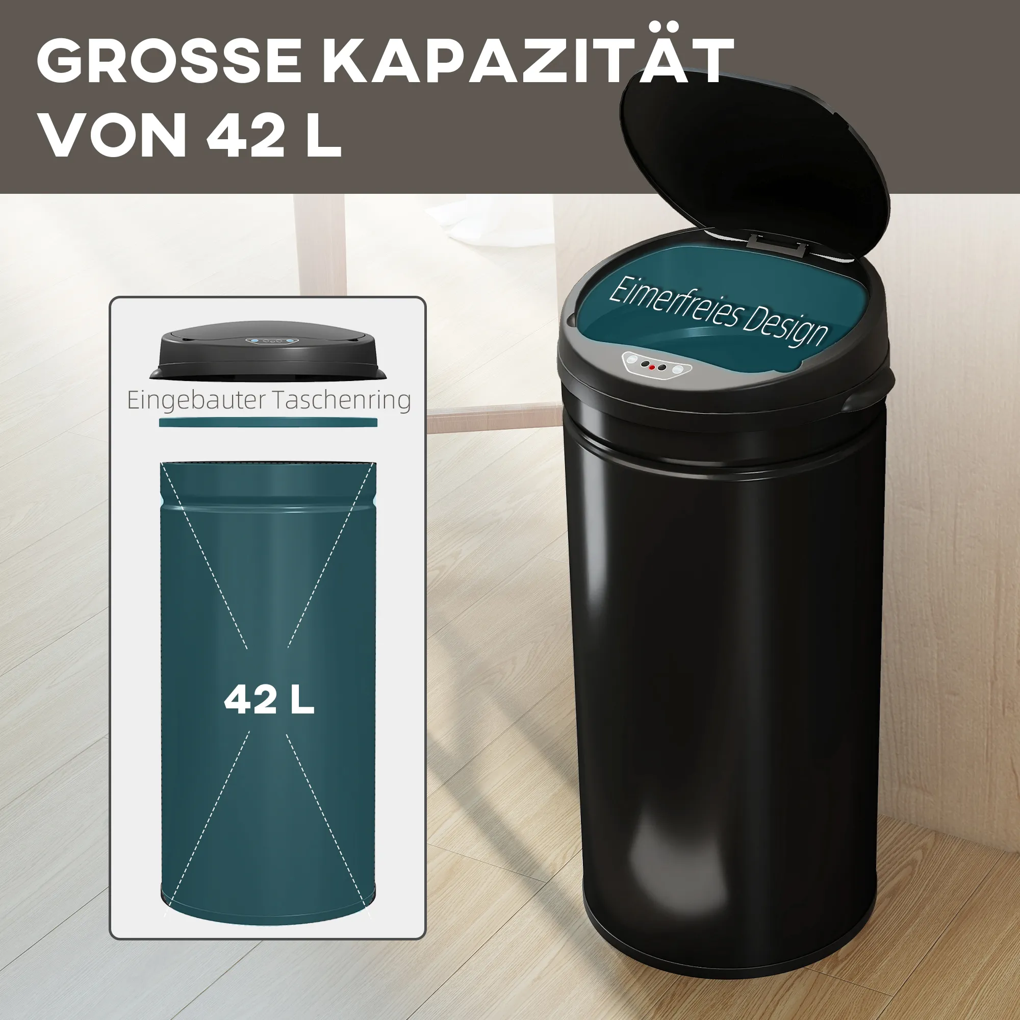 42 Liter Sensor-Afvalbak Met Soft-Close-Functie, Aanraakvrije Vuilnisbak Van Roestvrij Staal Voor Hygiënische Keukens