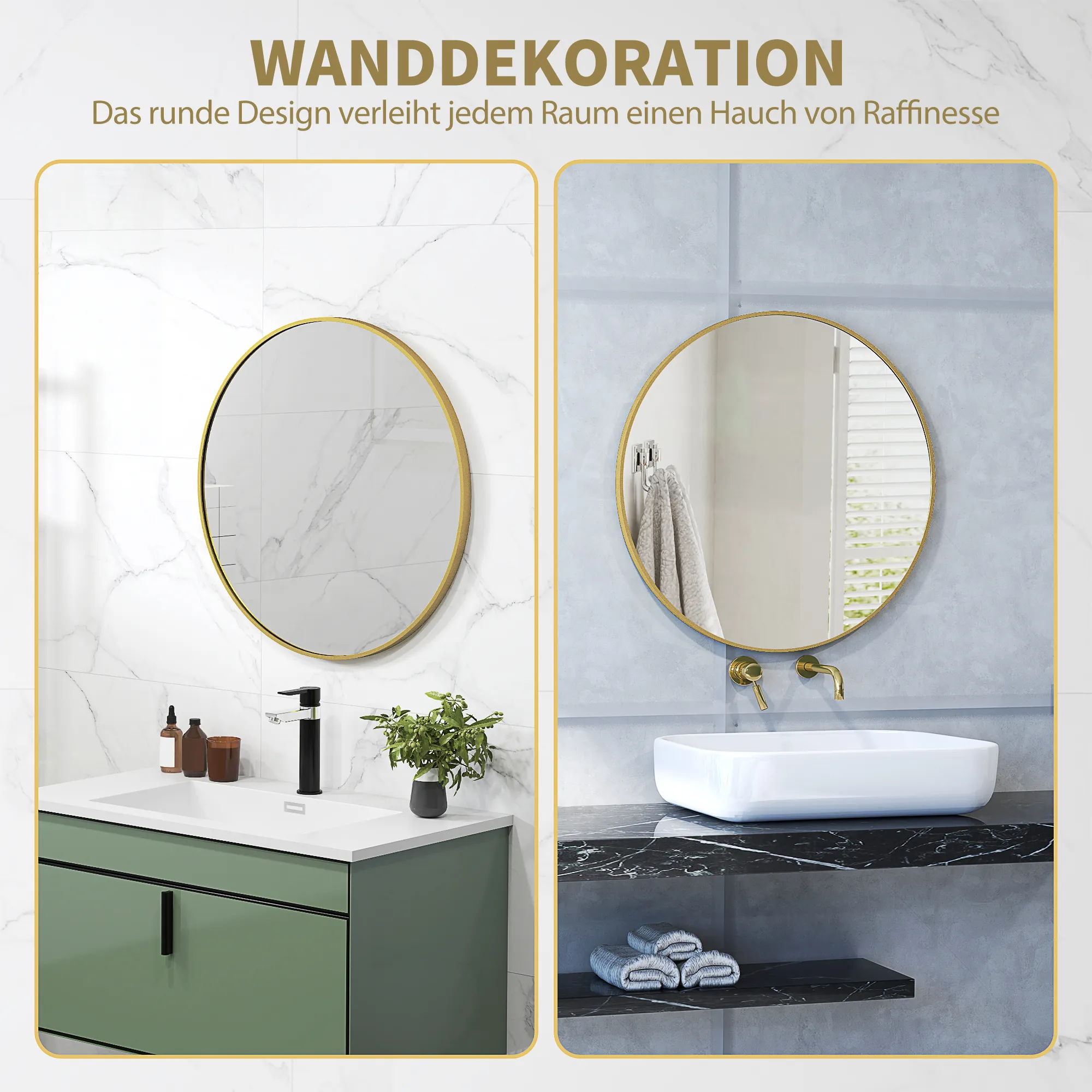 70 X 70 Cm Ronde Badkamerspiegel, Wandmontage, Goudkleurige Frame