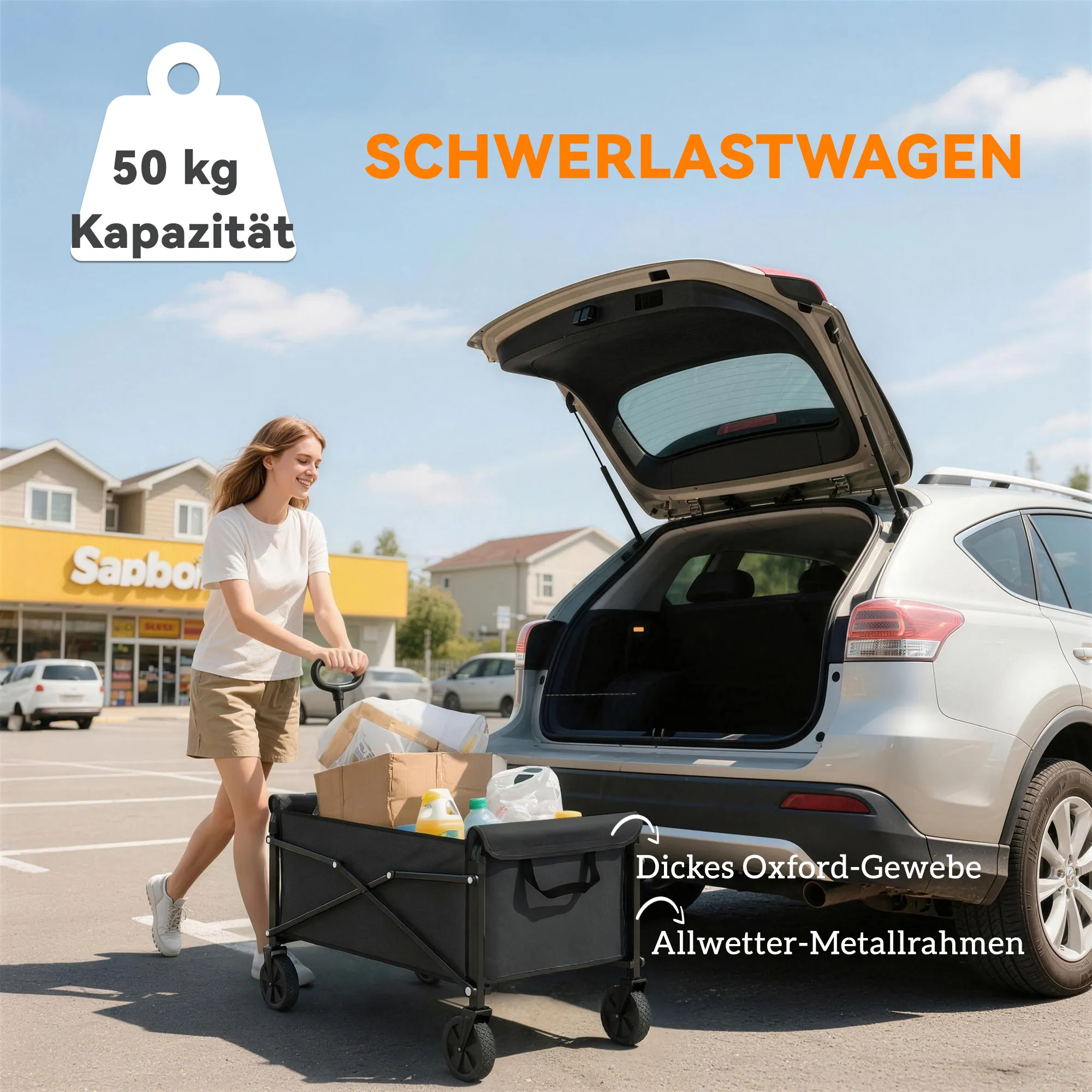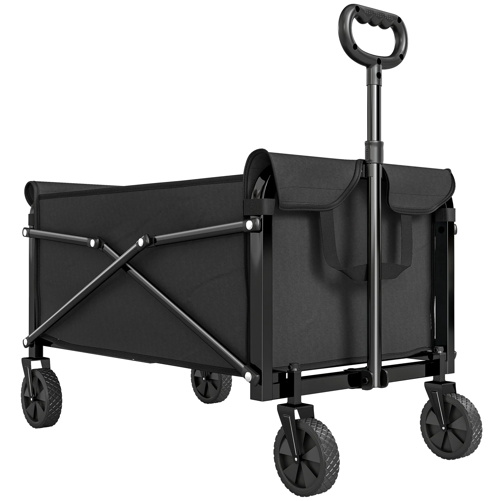 80L Festivalwagen Op Wielen, Compacte Opvouwbare Tuinwagen Met Verstelbare Handgreep, Zwart
