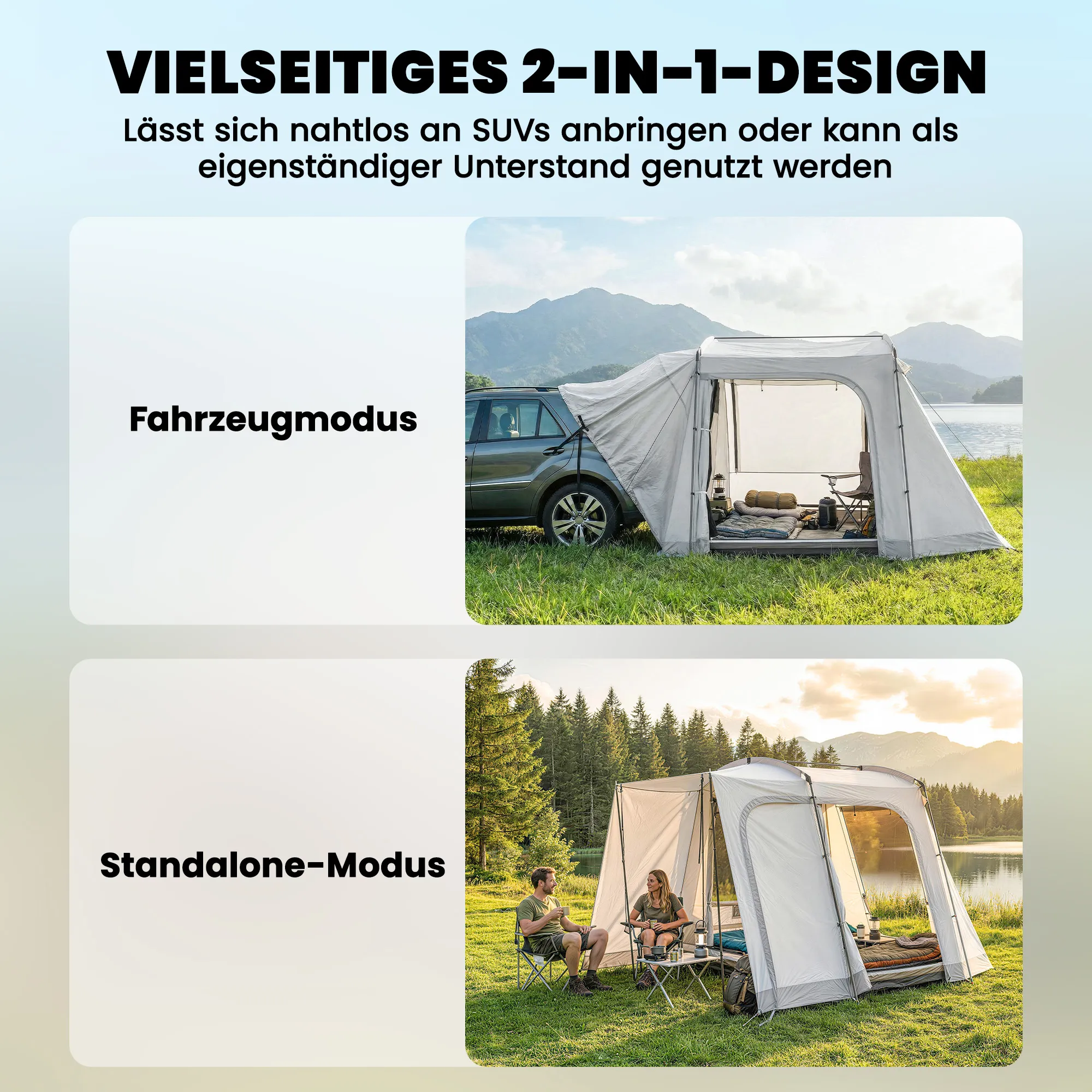 Op zoek naar meer ruimte en comfort tijdens je familieavonturen op de camping? De [BRAND NAME] achtertent biedt de oplossing met royale ruimte voor maximaal vier personen. Deze tent kan bevestigd worden aan je SUV voor extra ruimte of kan op zichzelf staan, waardoor je flexibiliteit krijgt voor elke kampeertrip. Met vier deuren en een groot raam geniet je van comfort en lichtovergoten uitzichten die je buitenervaring verrijken.