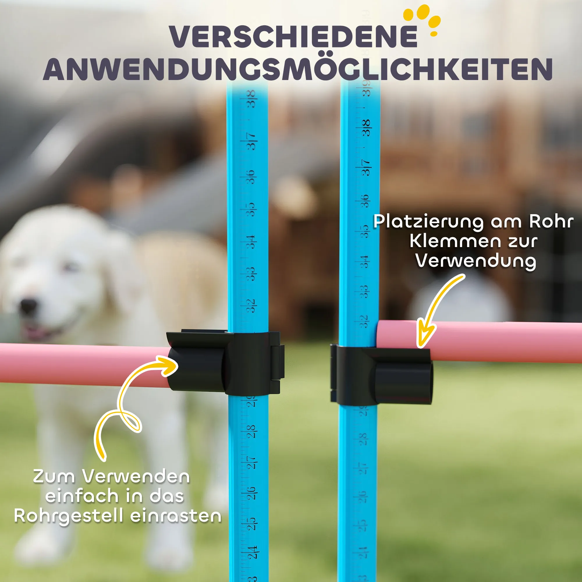 - Complete set: 2 hindernisstangen, 2 slalomstangen en 4 grondstangen voor behendigheidstraining