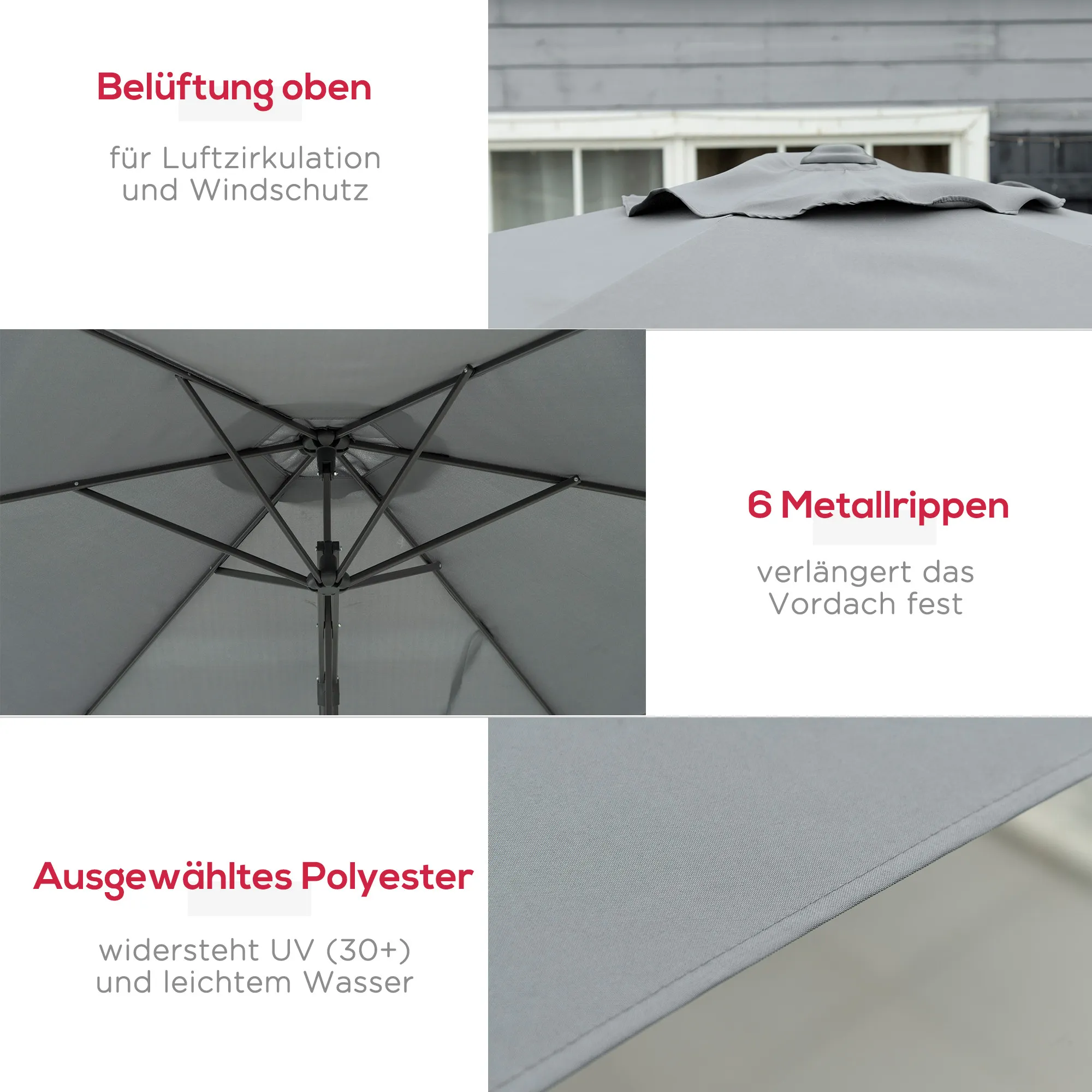 - Weerbestendig: UV30+ polyester stof en gepoedercoat stalen frame