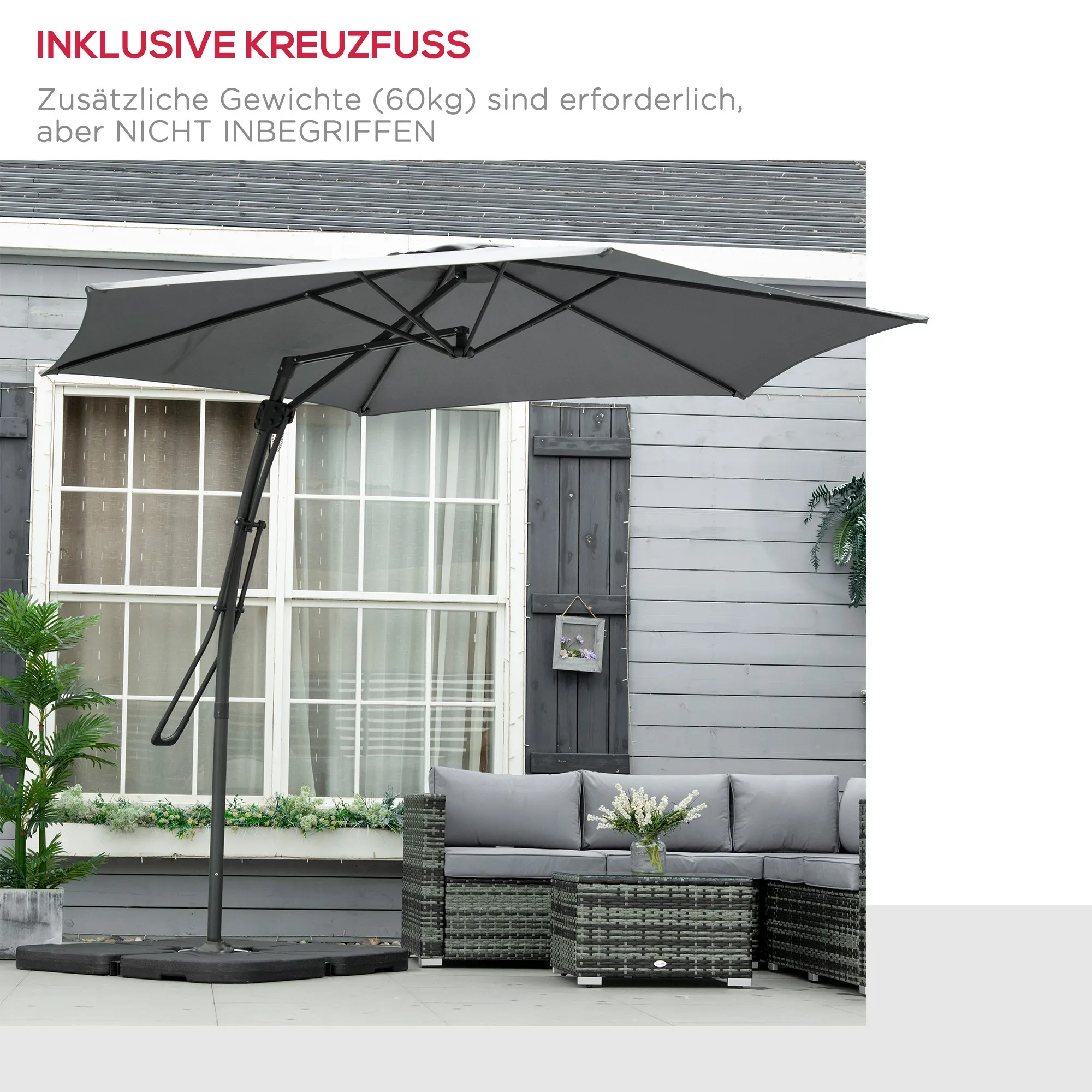 - 1 x Hangende terrasparasol