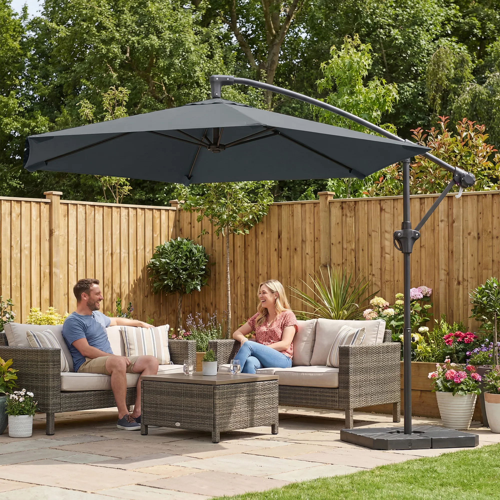 Geniet van comfortabele schaduw in je tuin met de [BRAND NAME] offset marktparasol – bestel vandaag nog!