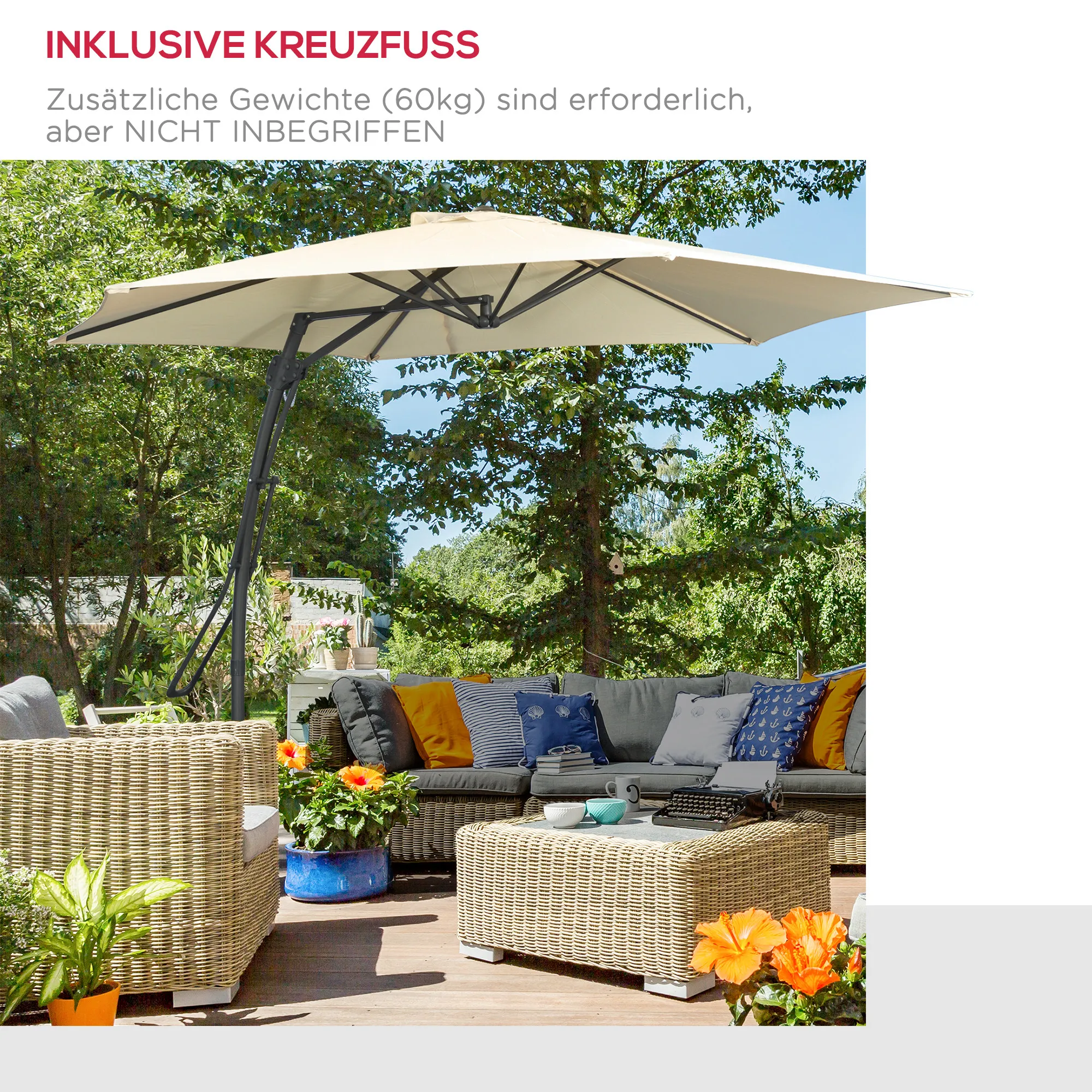 - 1 x Hangende terrasparasol