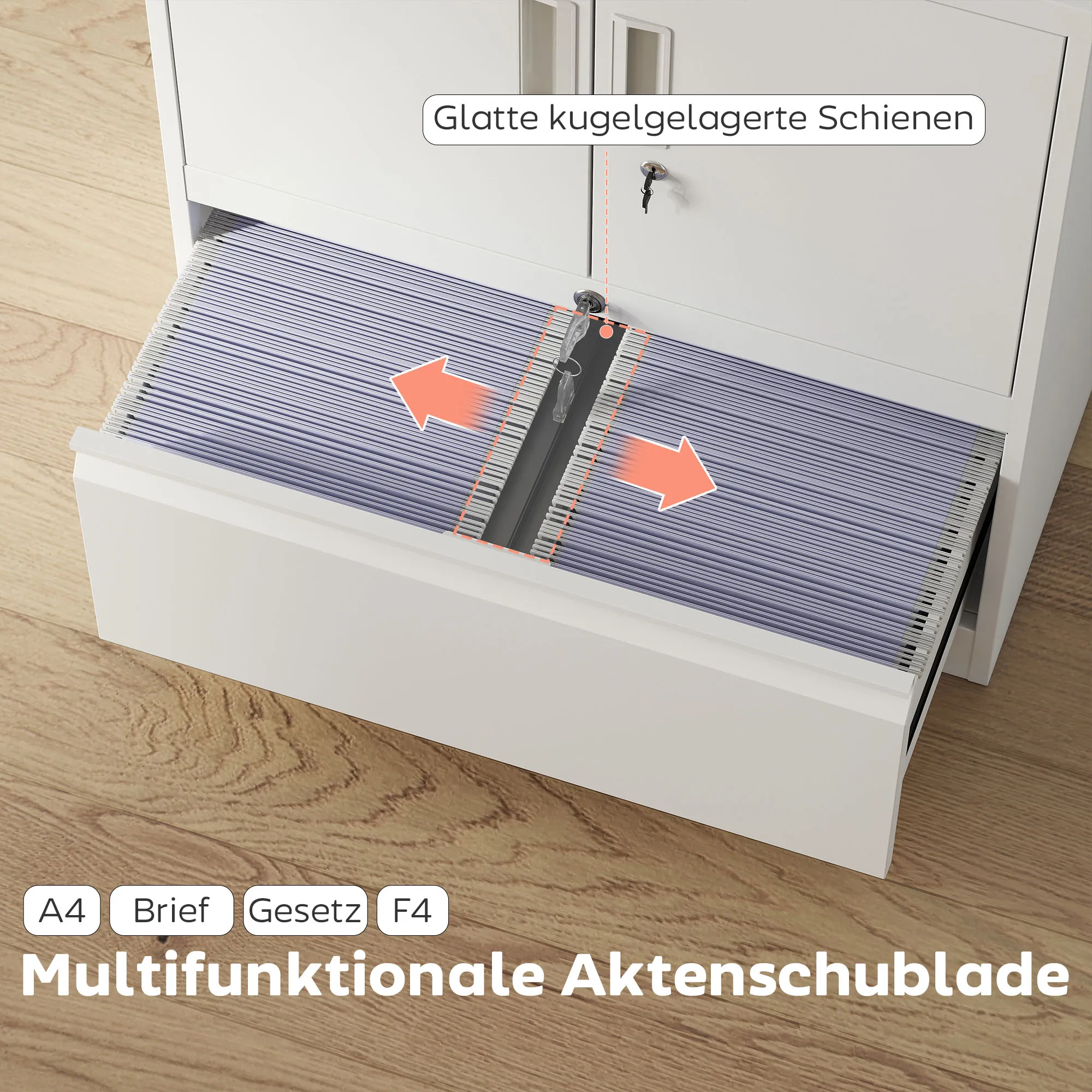 - Veiligheid: twee aparte sloten op de deuren en lade voor het veilig opbergen van belangrijke documenten