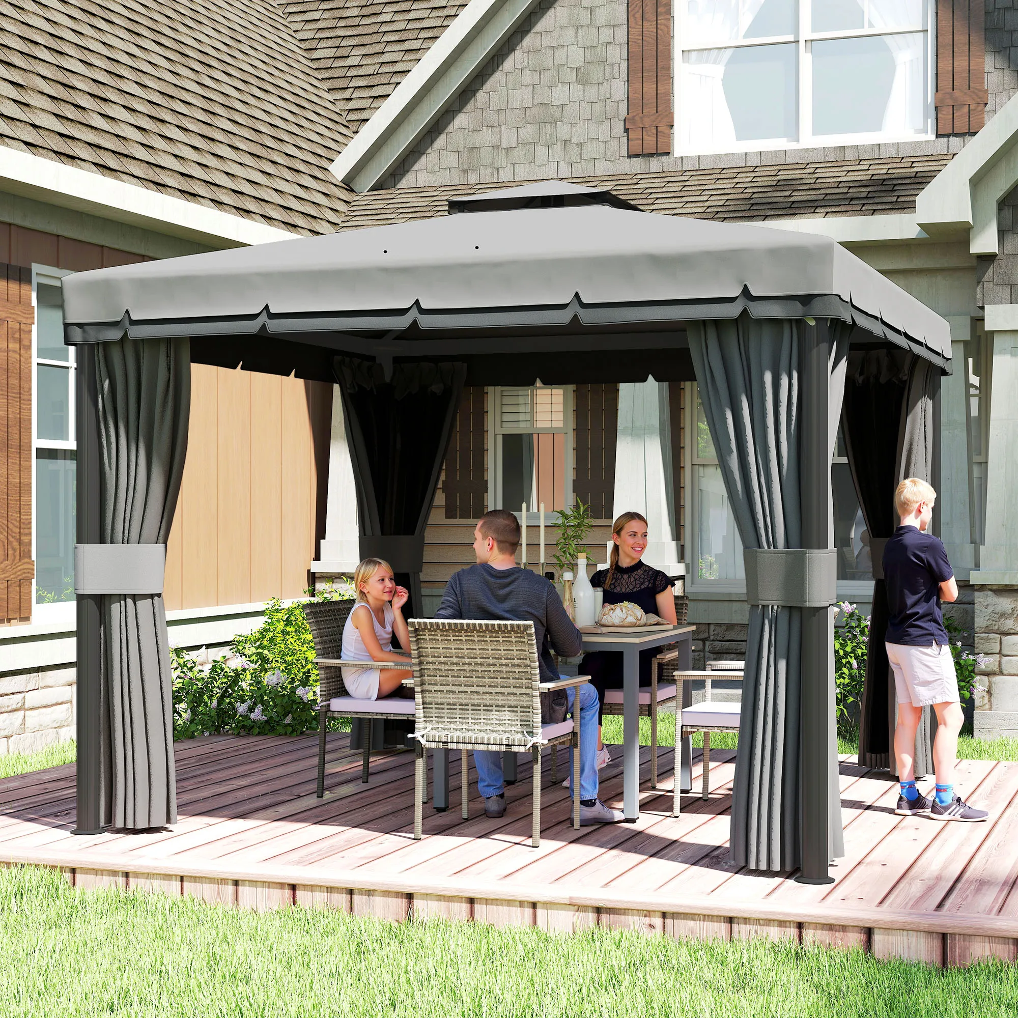 Avillon Ca. 3x3m Waterafstotend Stabiel Winterbestendig Tuinpaviljoen Met Dubbeldak Ritssluiting-Muggennetten