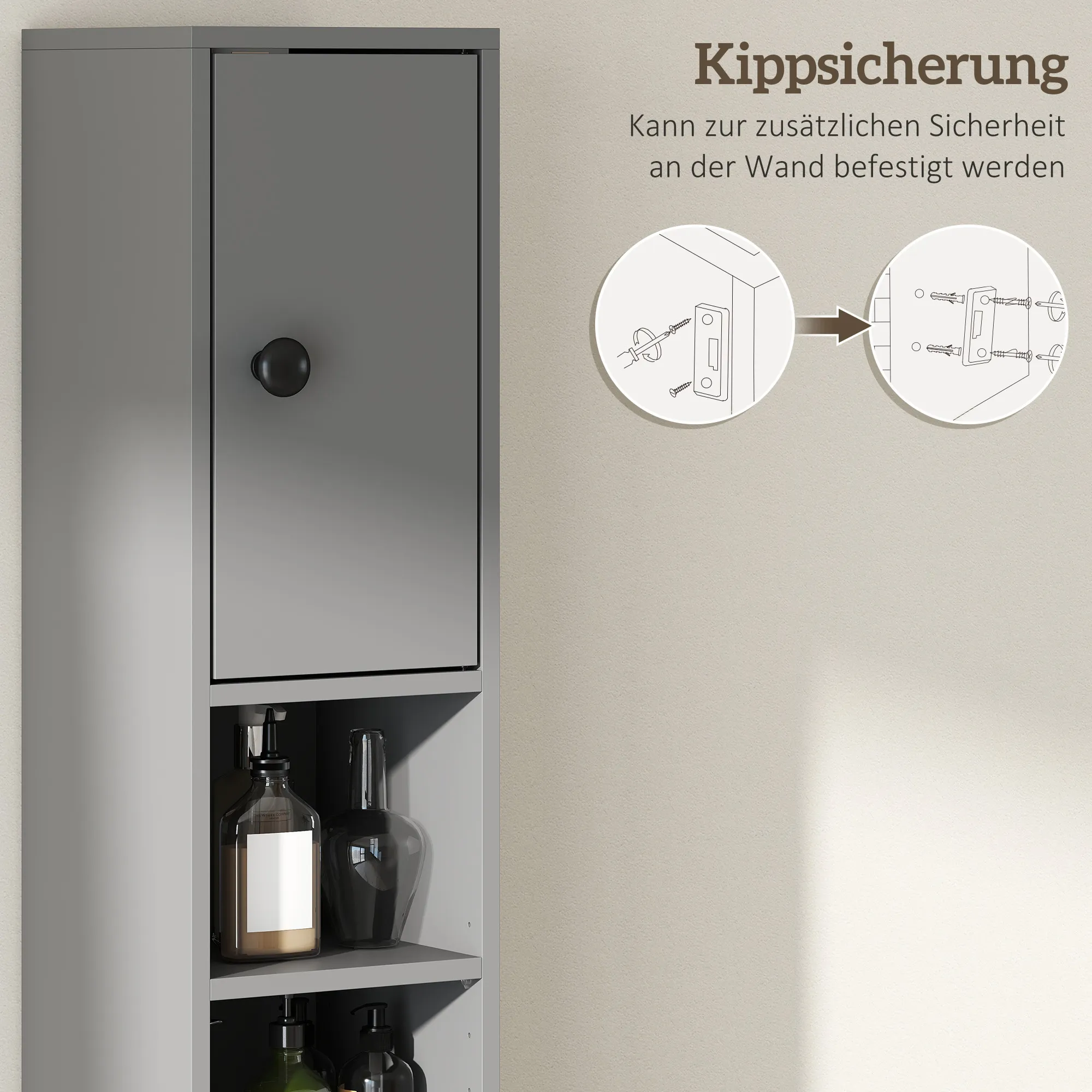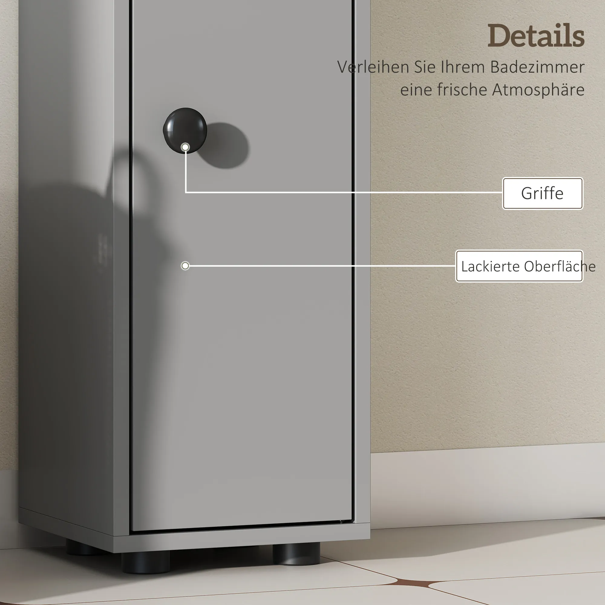 Badkamerkast, 4 Planken, Lade, Spaanplaat, Slank Ontwerp, Grijs