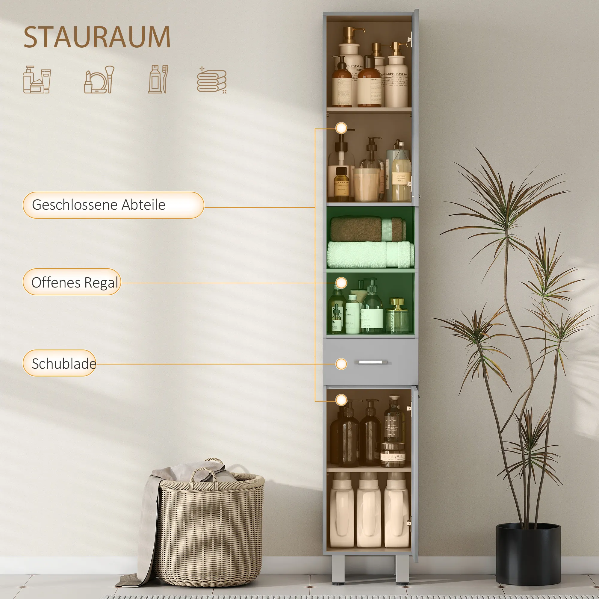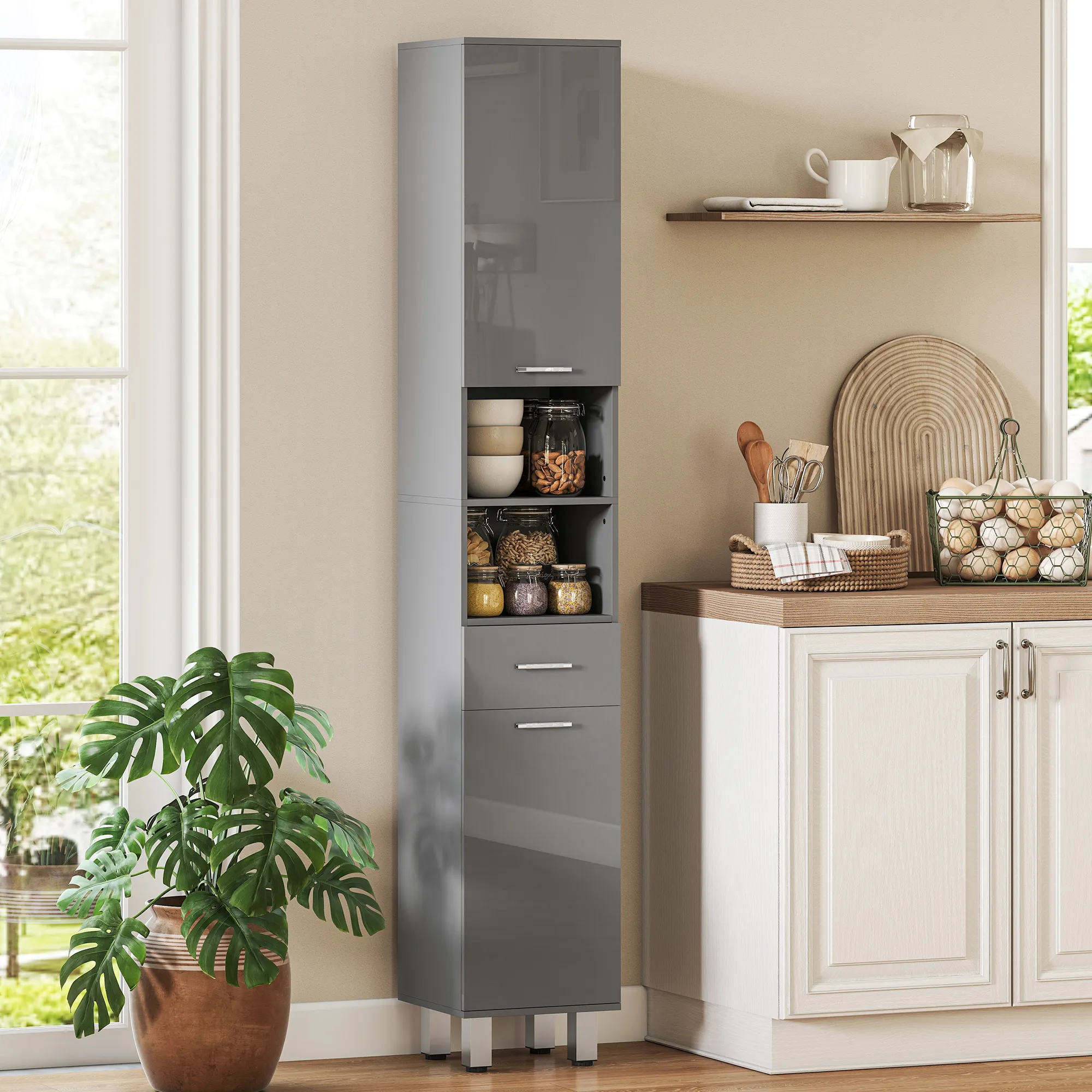Heb je extra opbergruimte nodig in de badkamer? Natuurlijk wel! De slanke badkamerkast van [BRAND NAME] biedt precies de ruimte die je nodig hebt. Het past perfect in die smalle hoeken die anders ongebruikt blijven. Ideaal om hygiëneproducten, schoonmaakmiddelen of handdoeken binnen handbereik op te bergen. Vermijd overvolle gangkasten en houd essentiële items direct beschikbaar in de badkamer met deze [BRAND NAME] vloerkast.