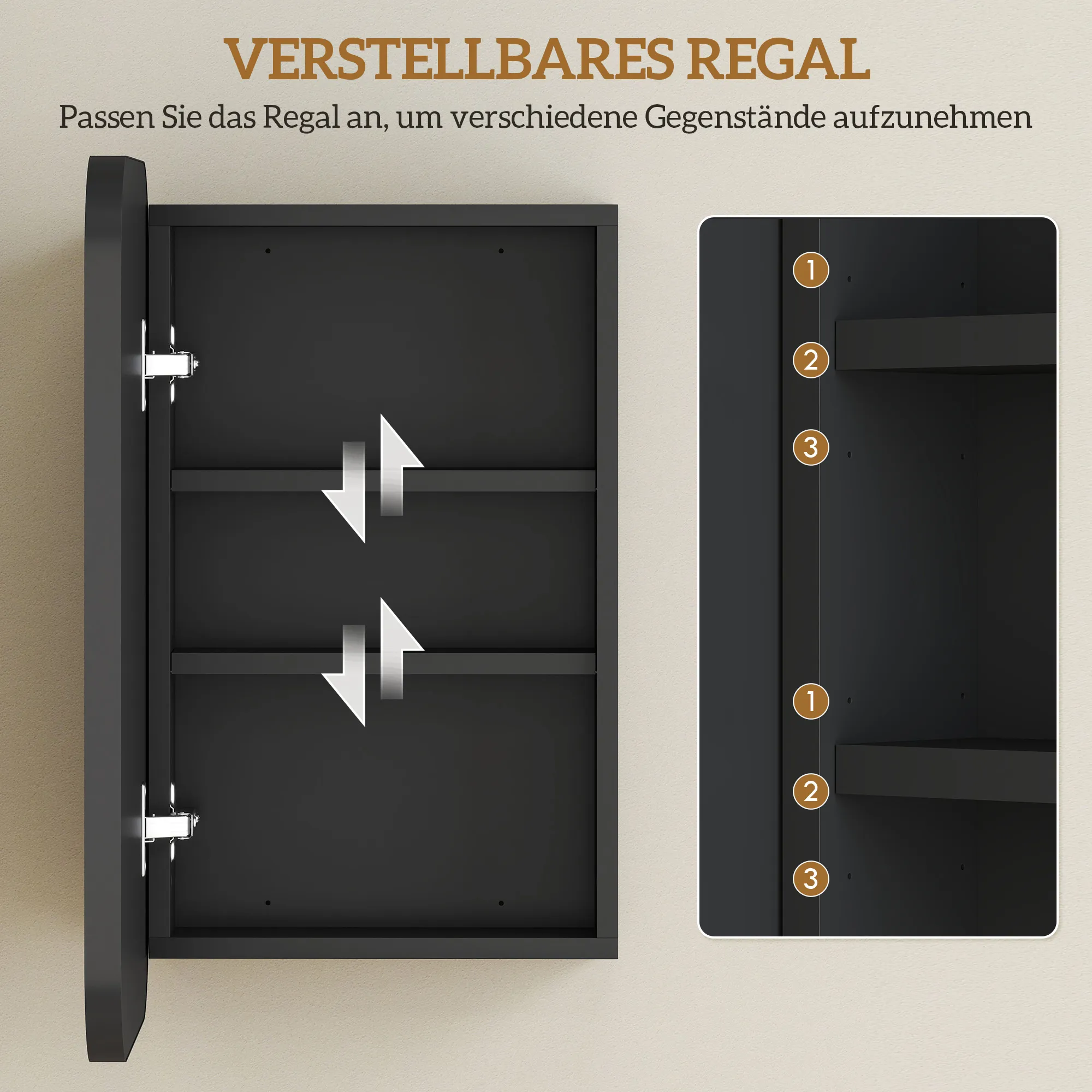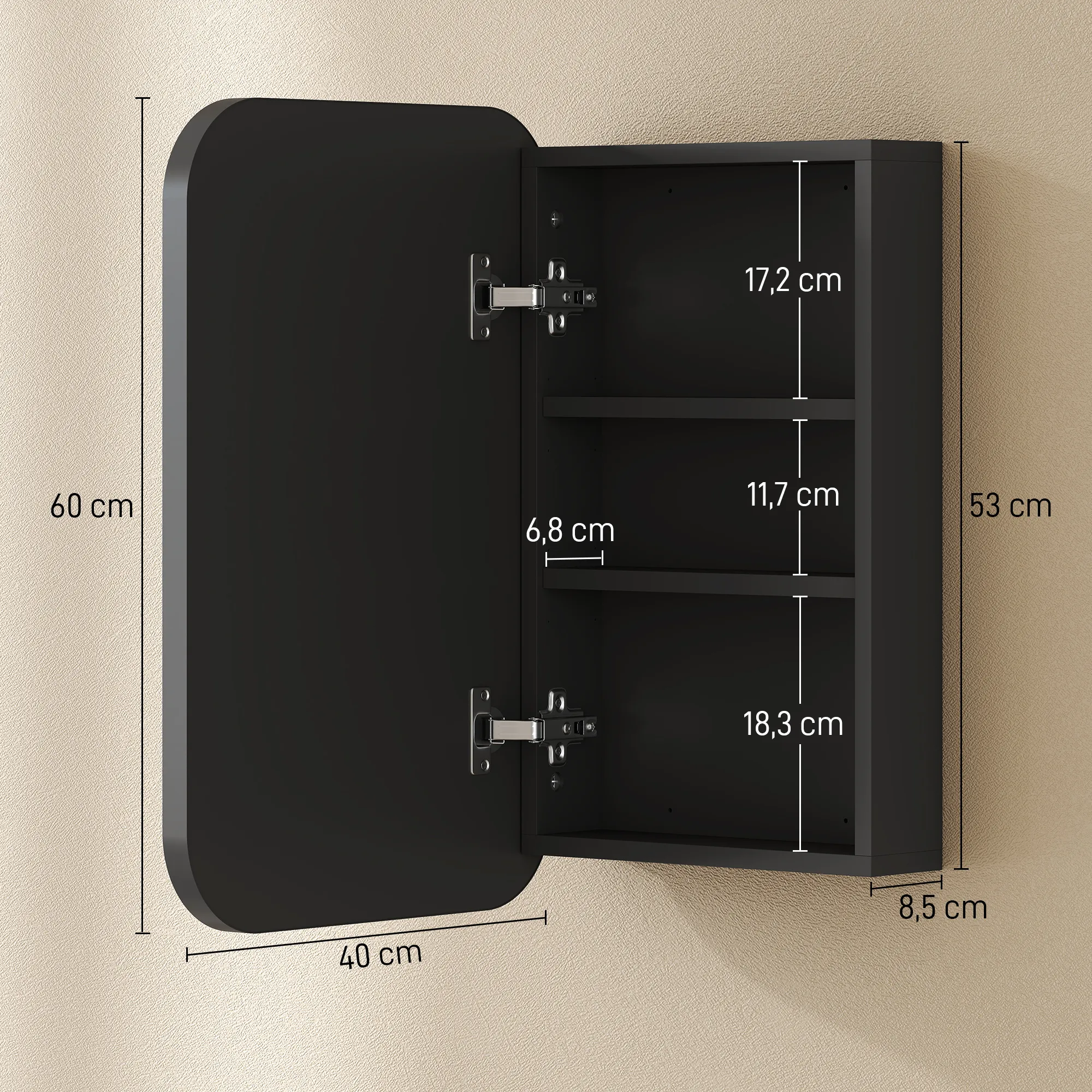 Badkamerspiegelkast, Badkamerkast Met Spiegel, Hangkast Met Verstelbaar Rek, 40 X 10 X 60 Cm, Zwart
