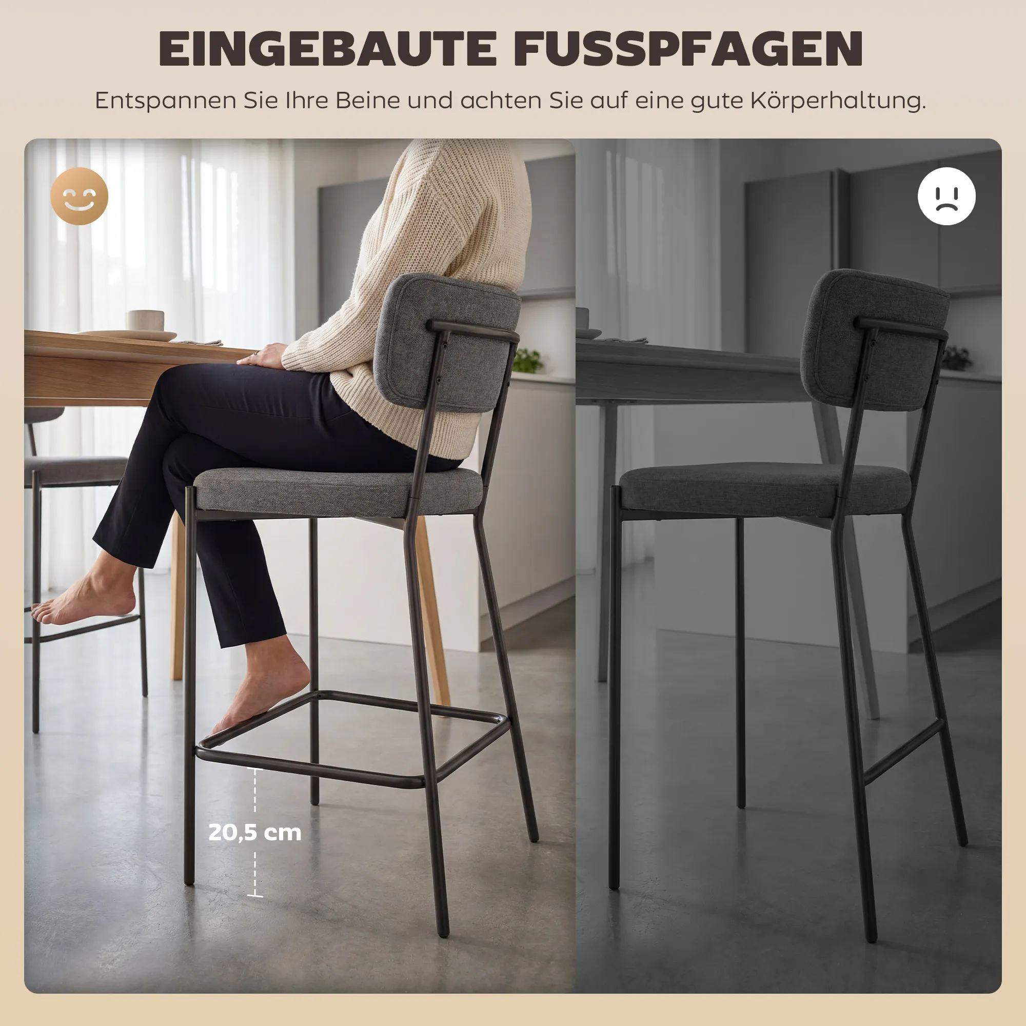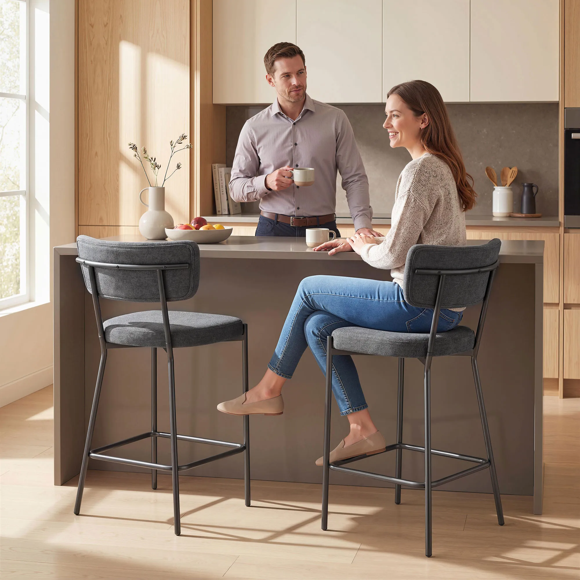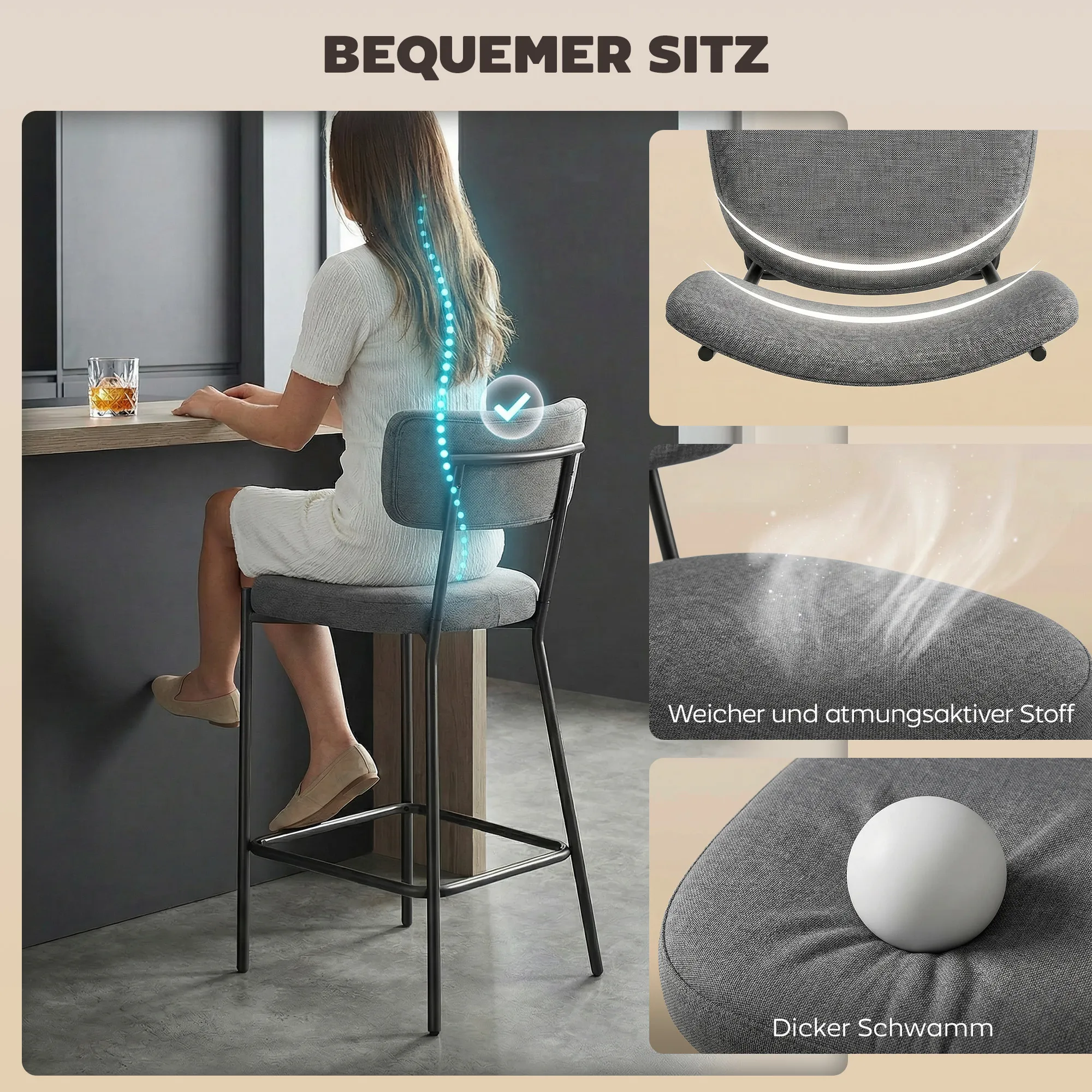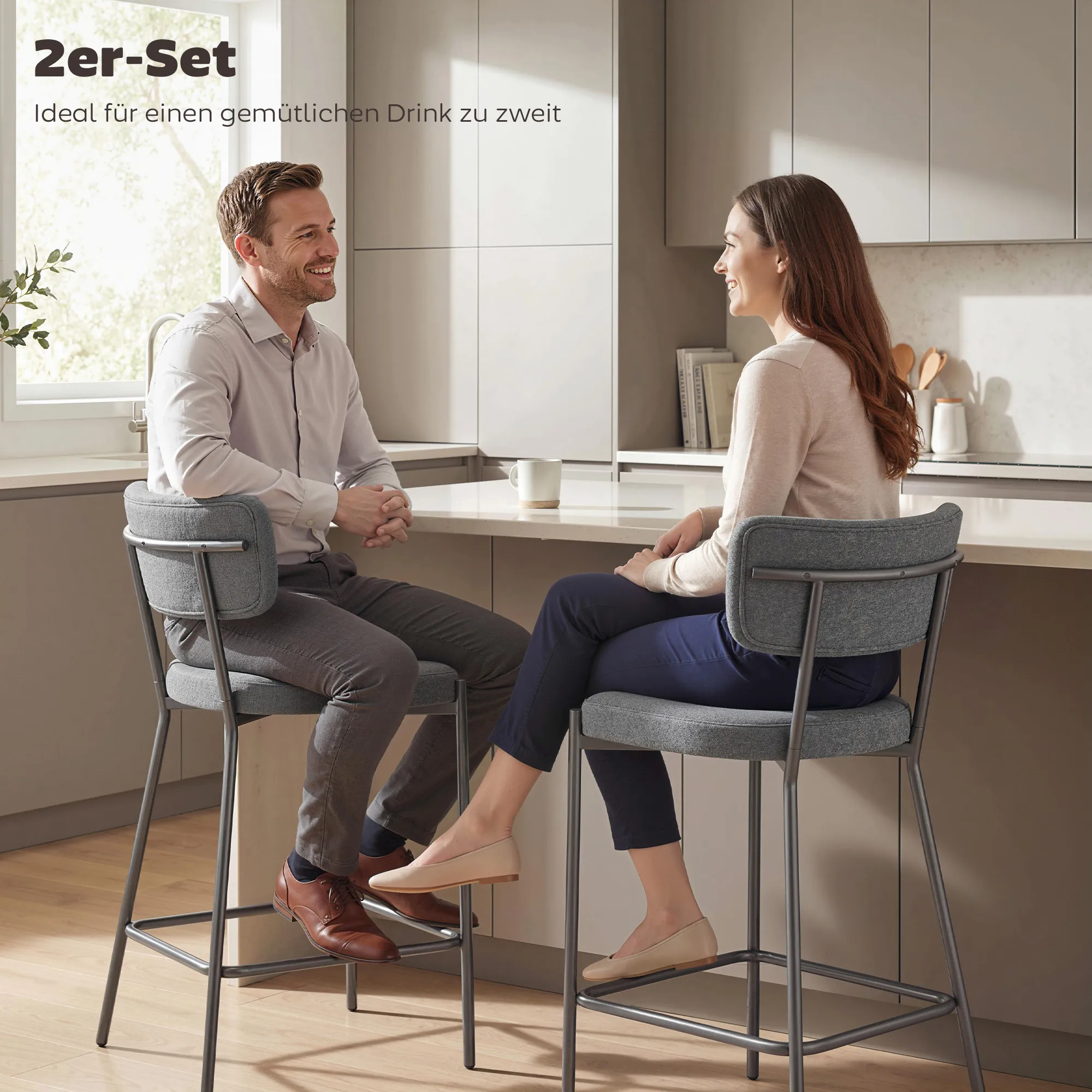 Barkrukken In Set Van 2, Gestoffeerde Barkrukken Met Gebogen Rugleuning, Voor Keukeneiland, Ontbijtruimte, Grijs