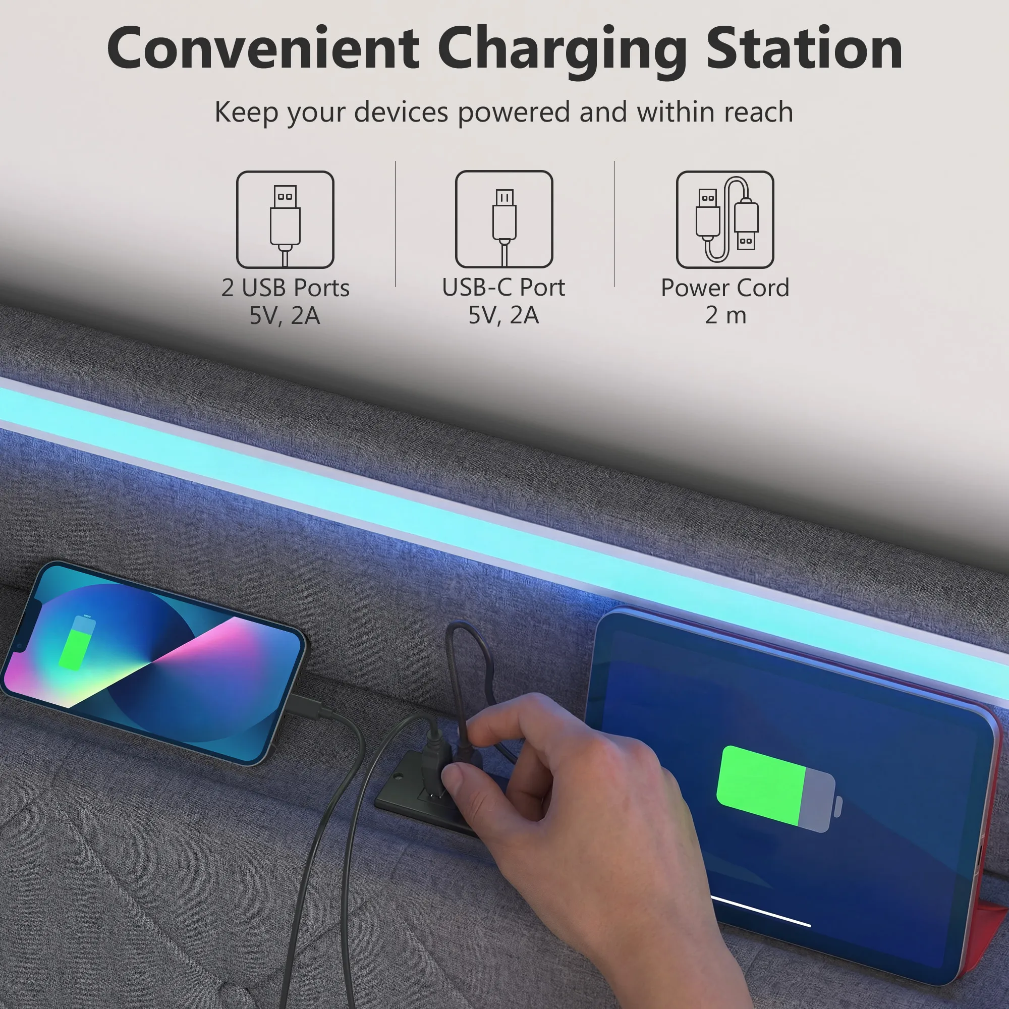 - Handig oplaadstation: USB-oplaadruimte in het hoofdeinde