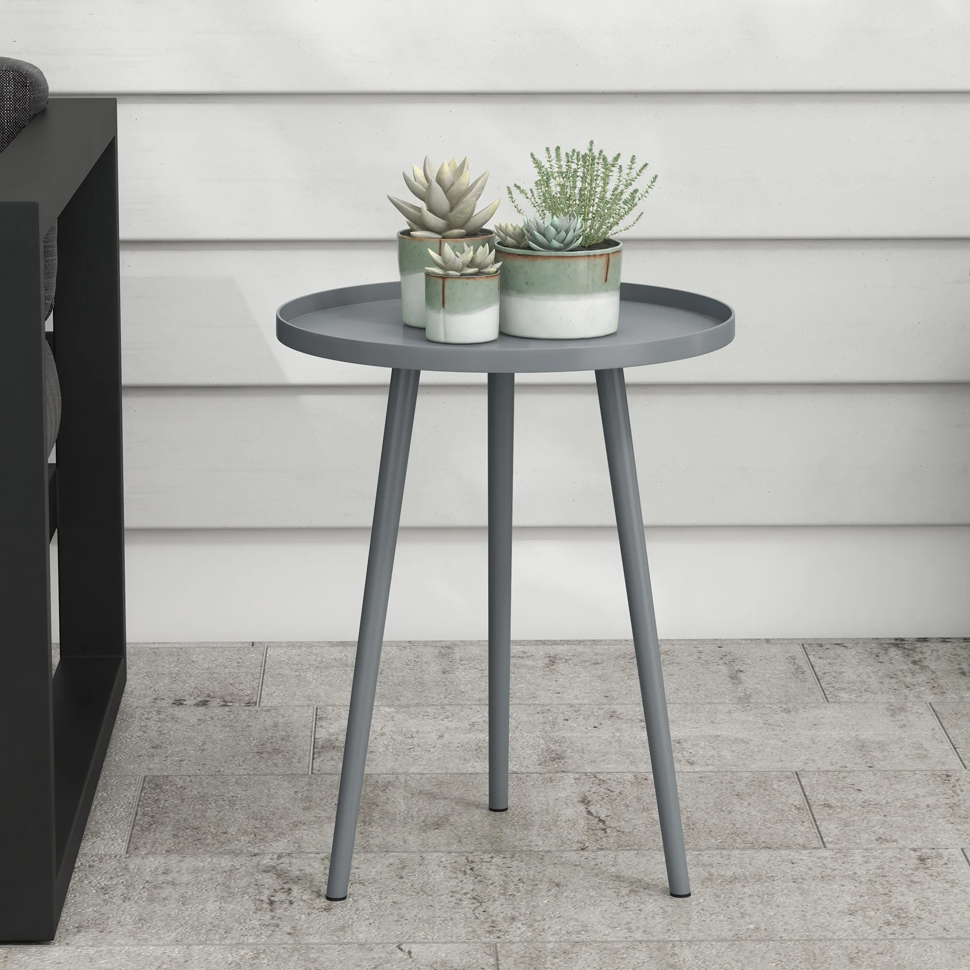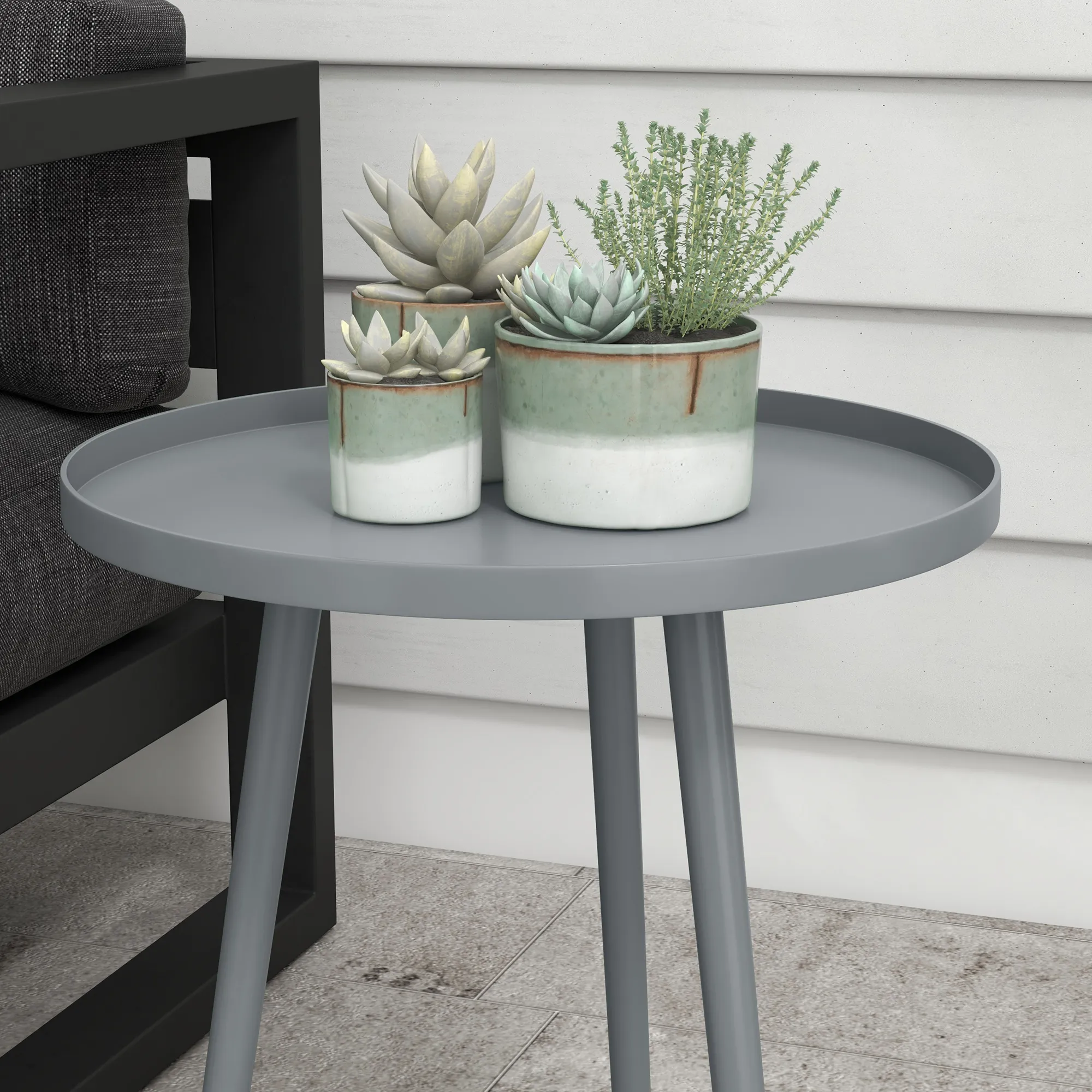 De outdoor bijzettafel van [BRAND NAME] is de perfecte aanvulling voor jouw huis. Of je nu een outdoor balkontafel nodig hebt voor gezellige avonden buiten of een praktisch opbergoppervlak naast de bank, deze tafel is uitstekend geschikt voor elke gelegenheid. De beschermrand van het tafelblad voorkomt bovendien dat voorwerpen eraf glijden. Gemaakt van robuust staal, is deze tafel uiterst duurzaam en weerbestendig.