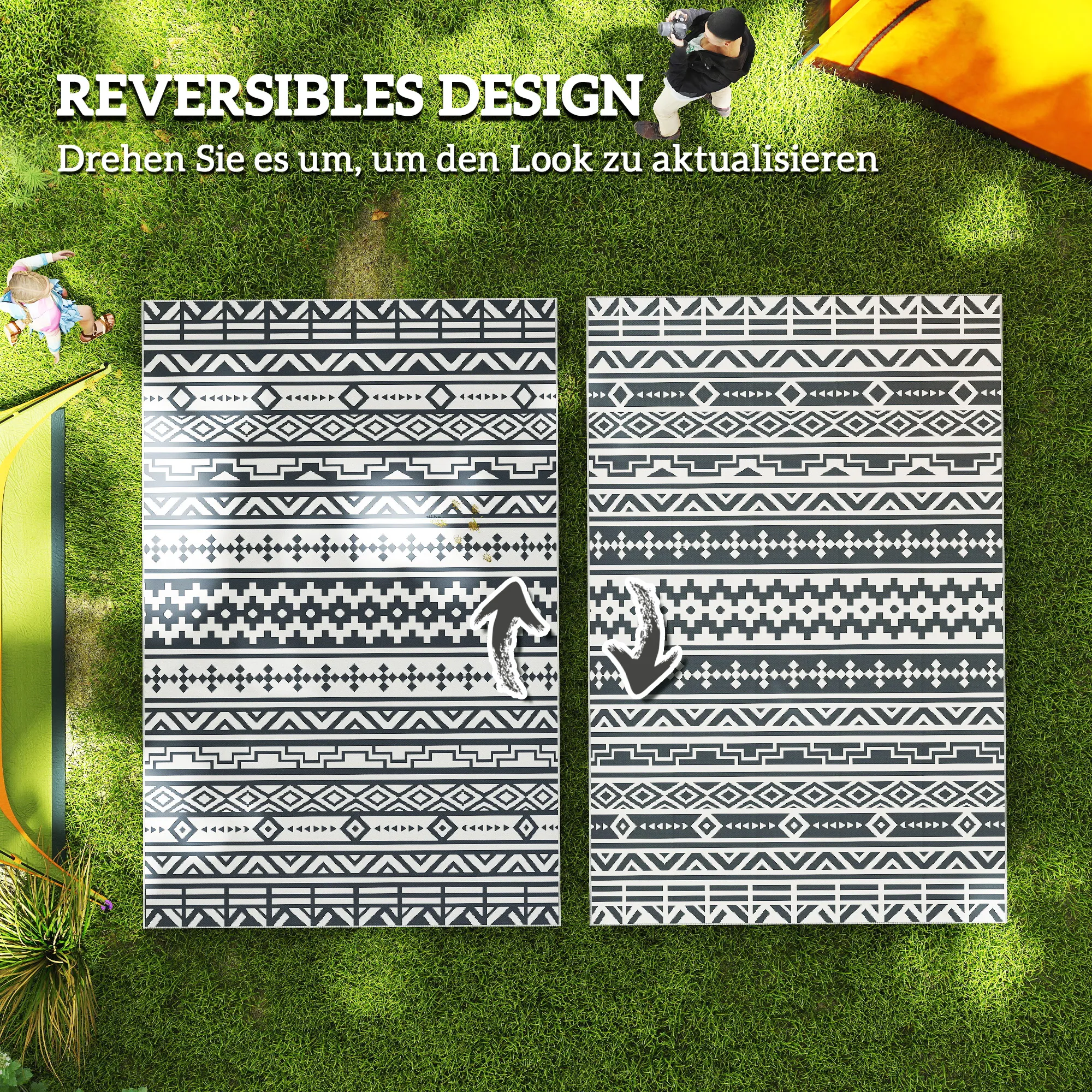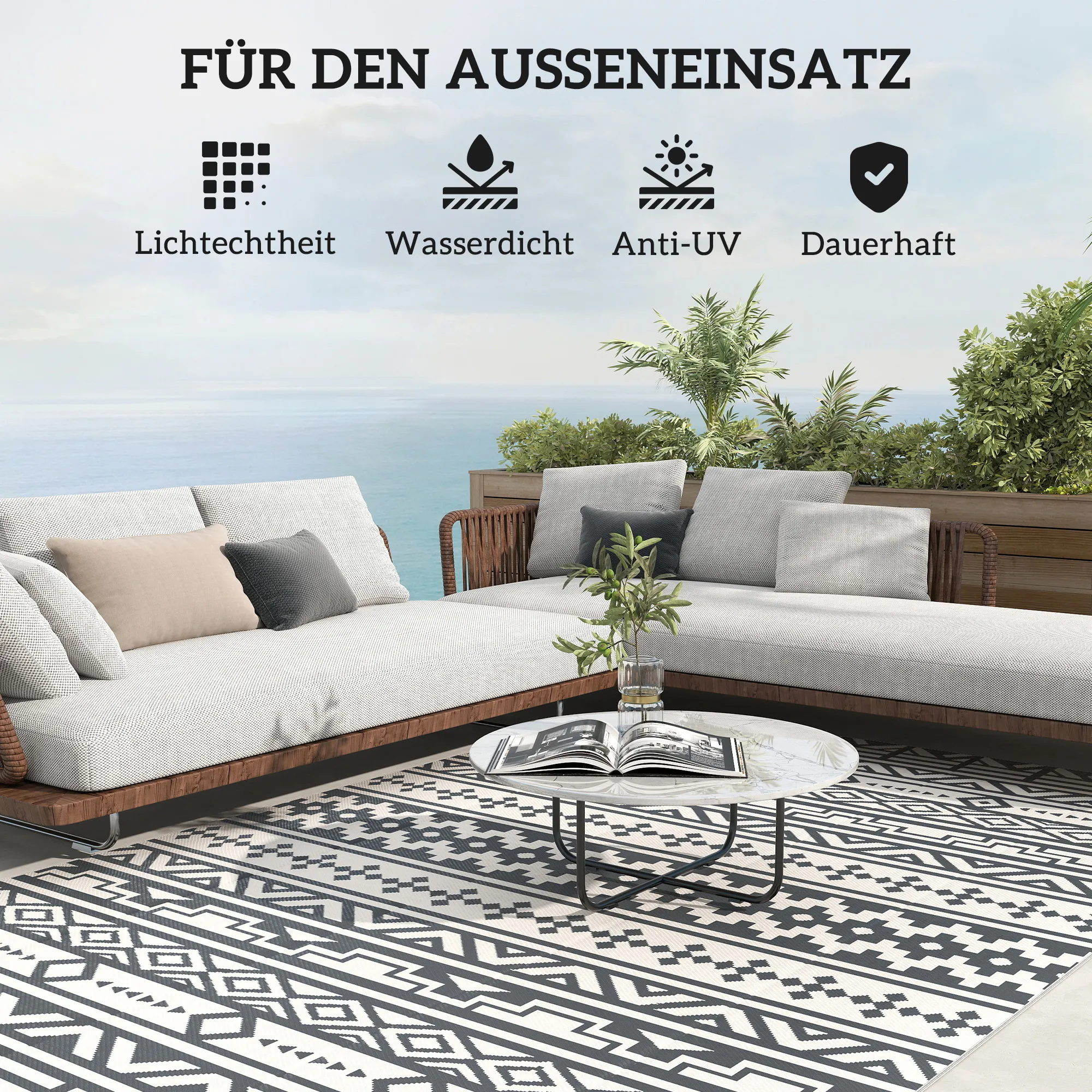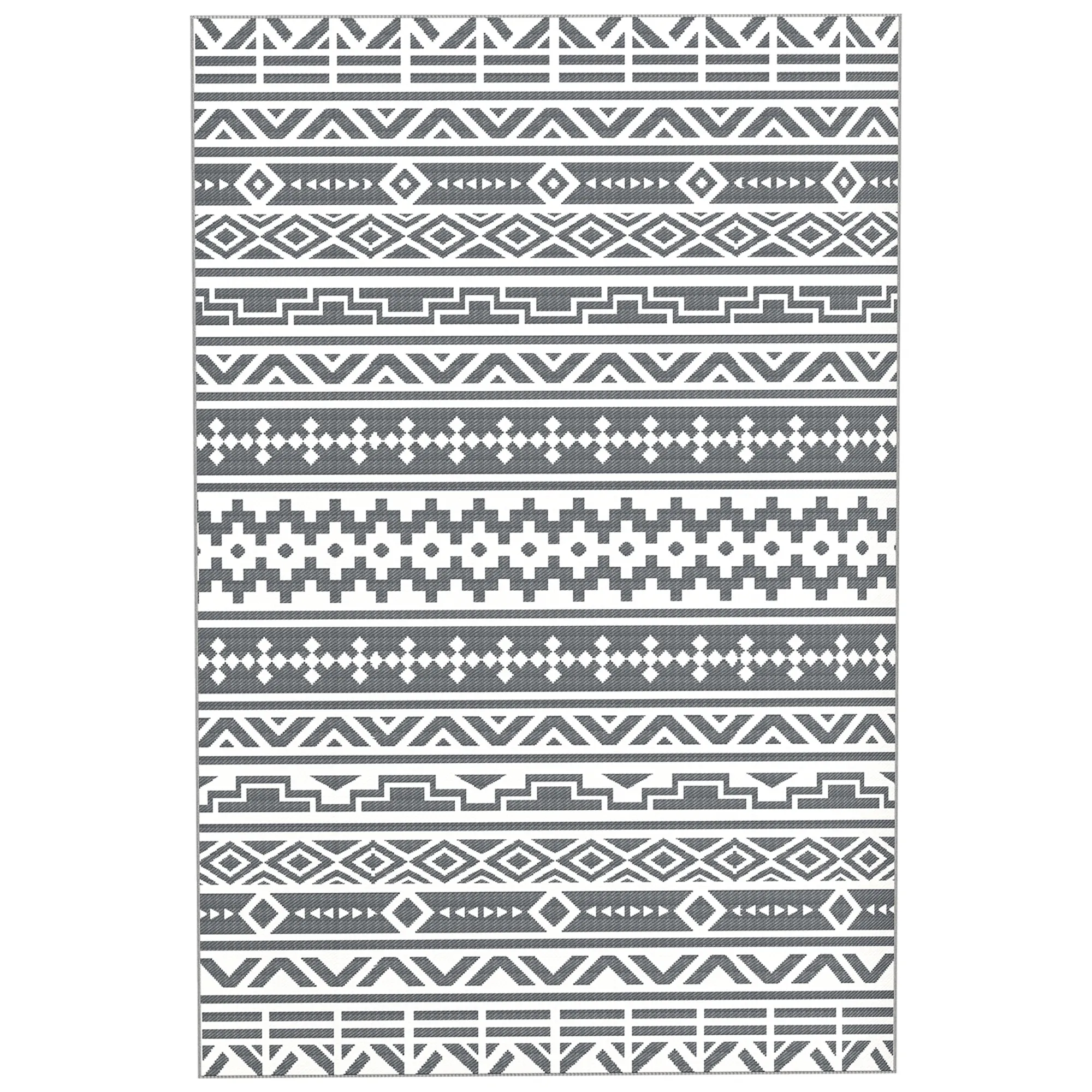 Buiten Tapijt Robuust Weerbestendig Buitentapijt, Opvouwbaar Tapijt Met Boho-Stijl, Buitentapijt Voor Woonkamer Balkon Tuin Terras Badkamer Gang Keuken, 182 X 274 Cm Donkergrijs+Wit
