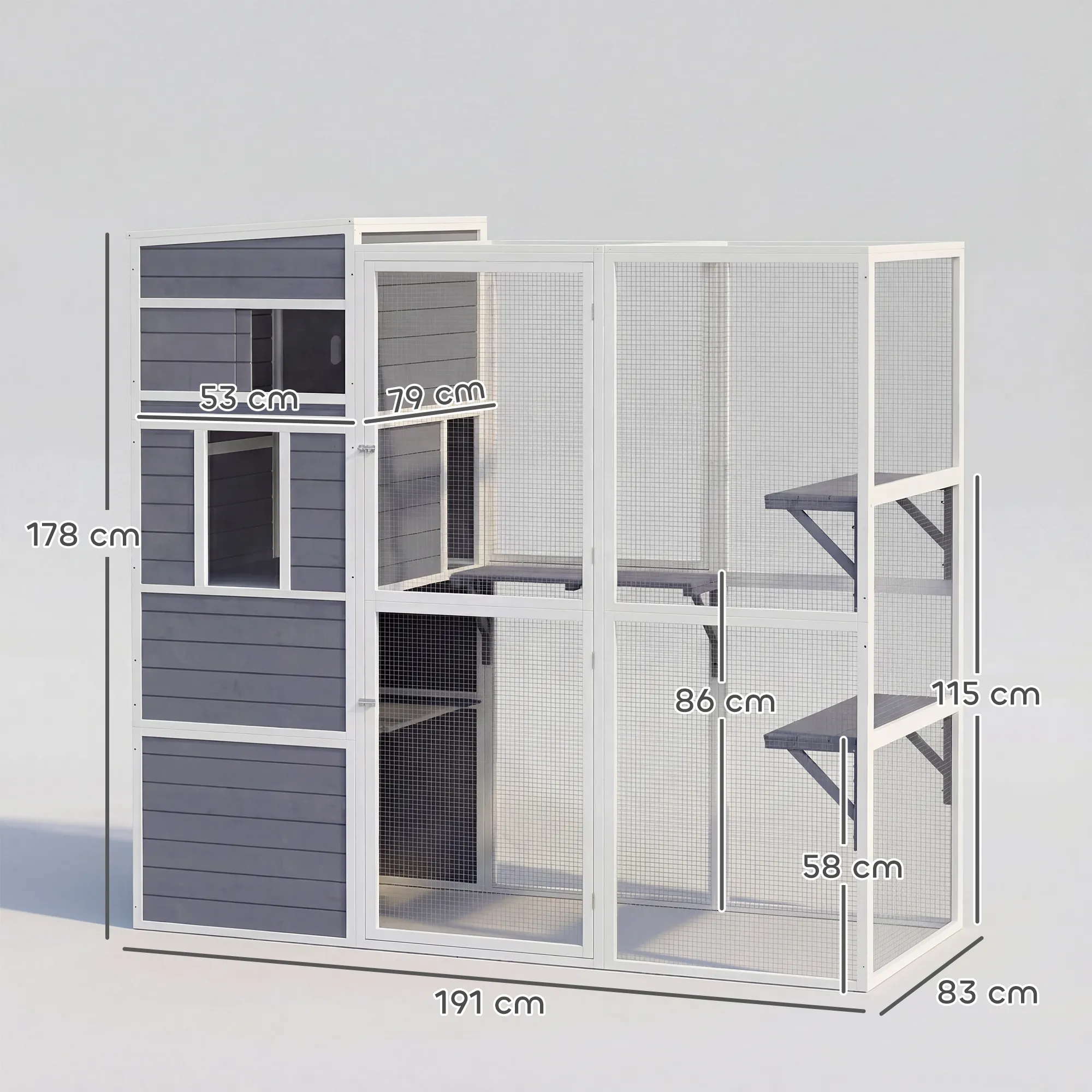 Met het ontworpen kattenverblijf van [BRAND NAME] geef je jouw katten alle ruimte om te klimmen, luieren en verkennen. Dankzij de vloer-tot-plafond deur kun je gemakkelijk naar binnen gaan om je dier schoon te maken of mee te spelen. De royale indeling en het weerbestendige zonnedak bieden meerdere katten een veilig paradijs om te zonnebaden of droog te blijven. Dit buitenkattenverblijf verrijkt het leven van je katten en maakt tegelijkertijd jouw dagelijks leven gemakkelijker.