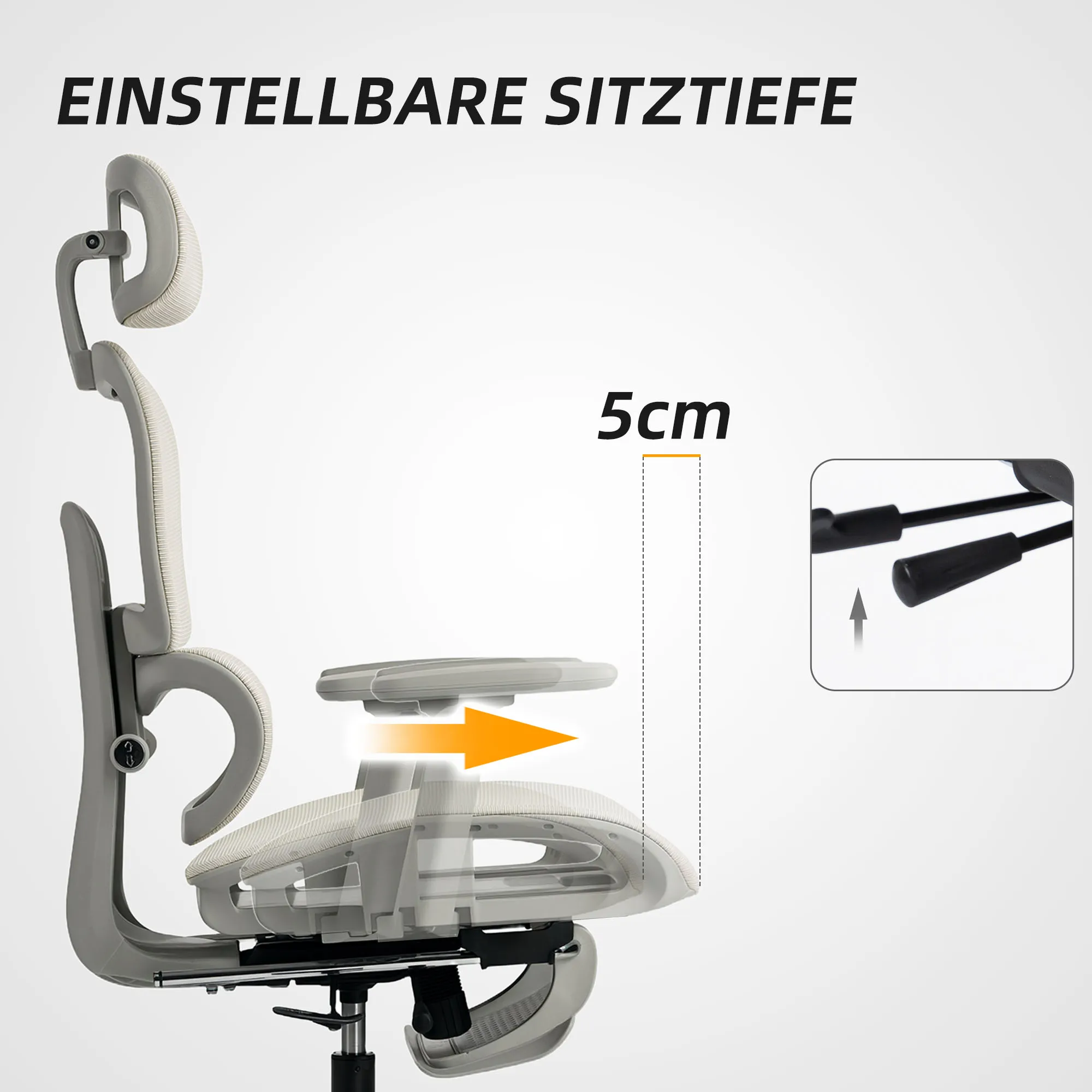 - Volledig verstelbaar: 3D-armleuningen, uitrekbare voetsteun, verstelbare zithoogte en -diepte