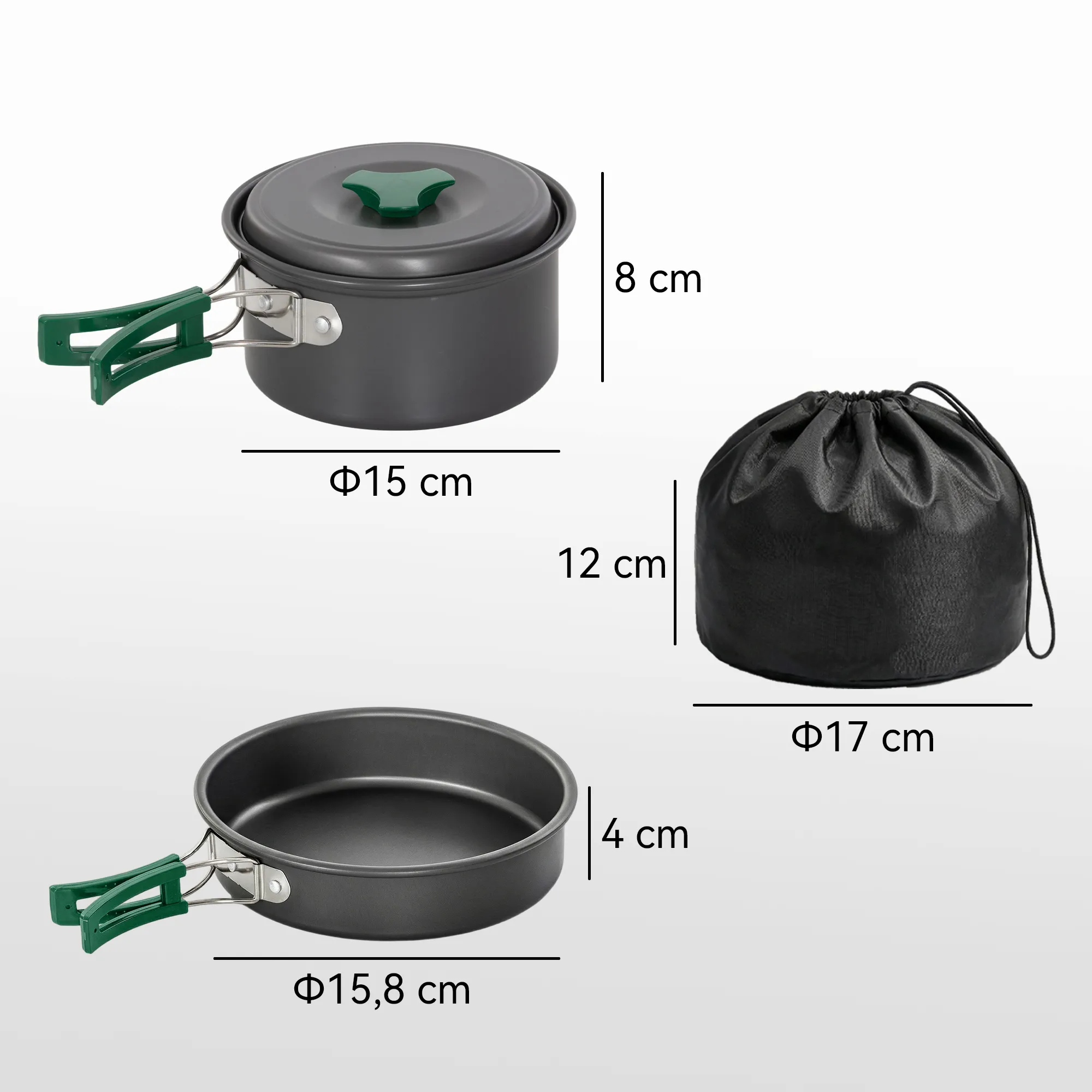 Camping Kookgerei Set 8-delige Outdoor Servies Set Met Anti-Verbrandingshandvatten Snel Verhittende Pot Pan Grijs