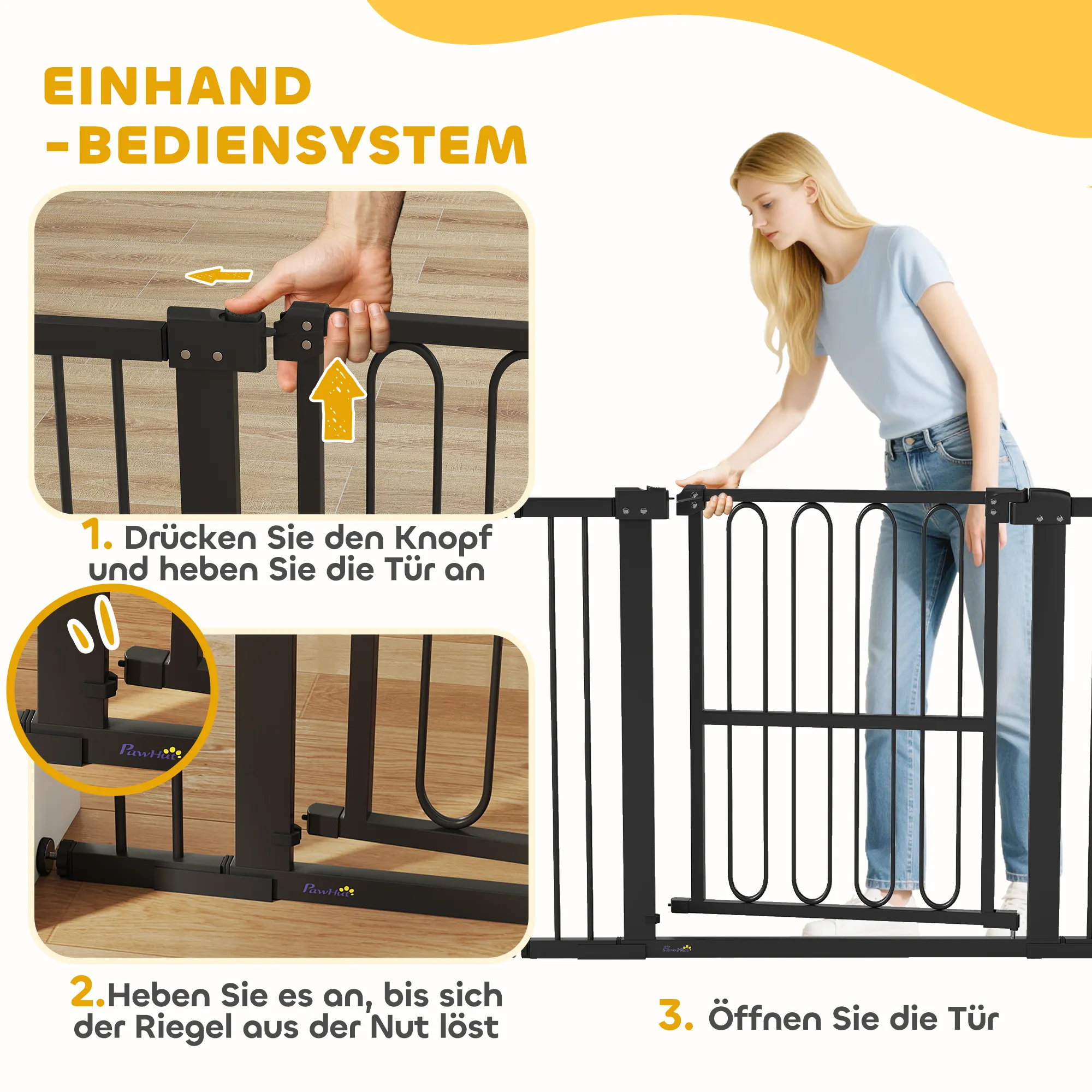 - Eenvoudige toegang: eenhandige bediening en dubbele beveiliging voor extra gemoedsrust