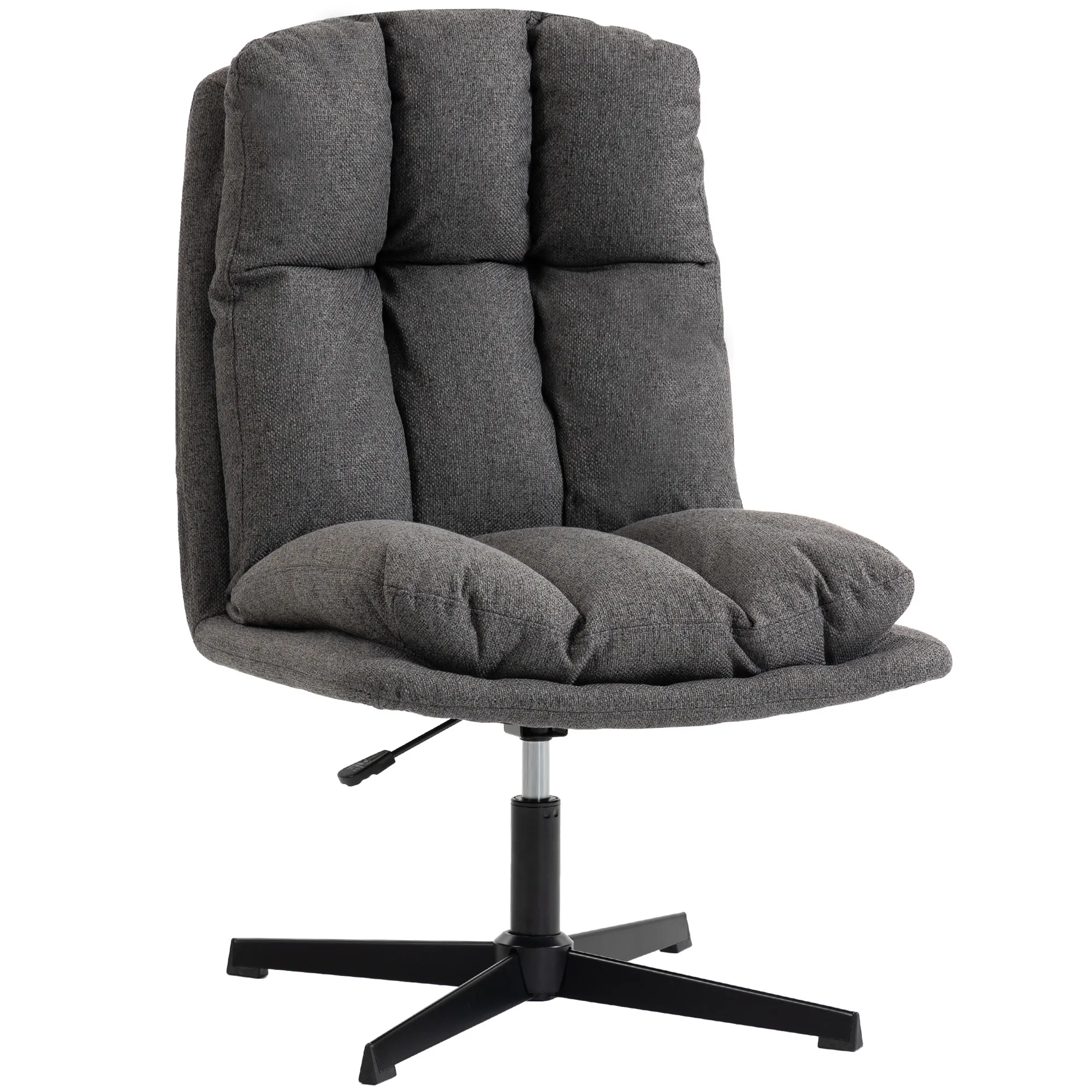 Draaibare Accentstoel, Stoffen Leesstoel In Linnenlook Zonder Armleuningen Met Brede Zit En Metalen Poten, Donkergrijs