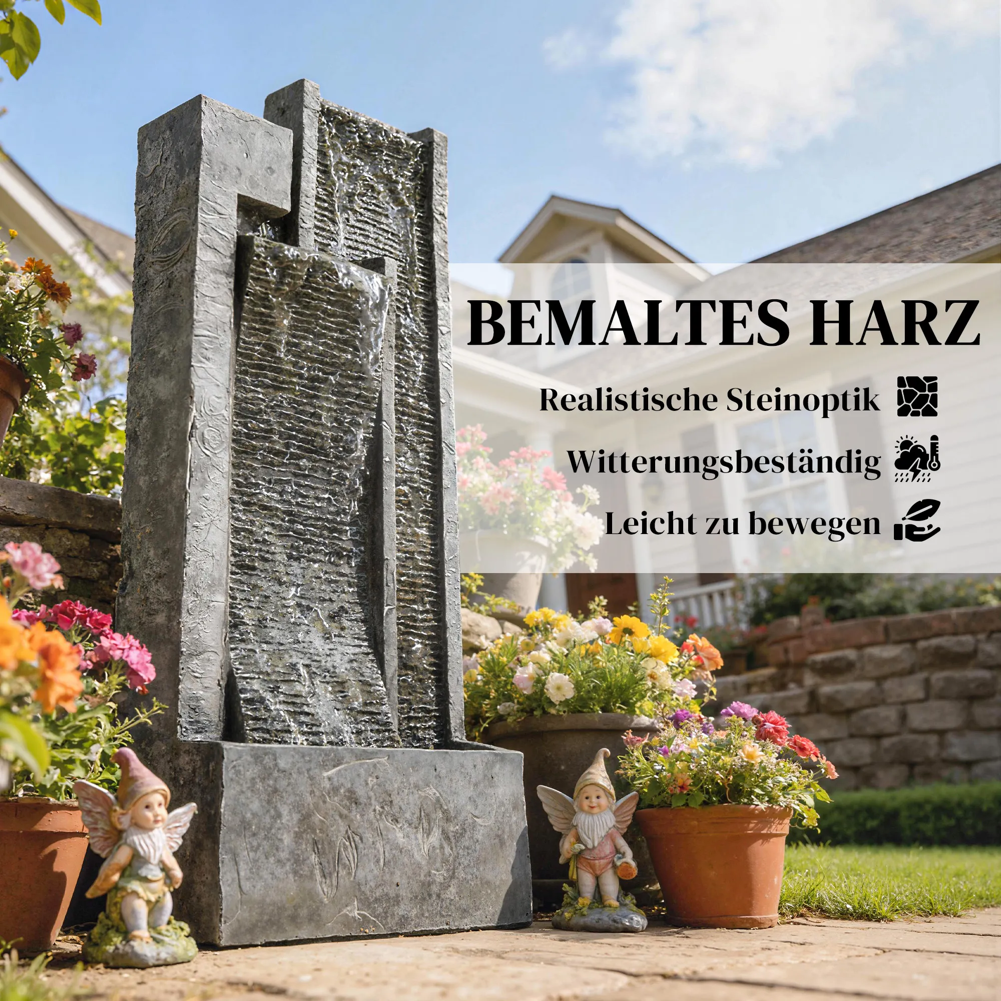 Drie-traps Tuinfontein Met LED-verlichting, Plantenbak, Pomp, Steenlook, Verstelbaar 38 X 19 X 101 Cm