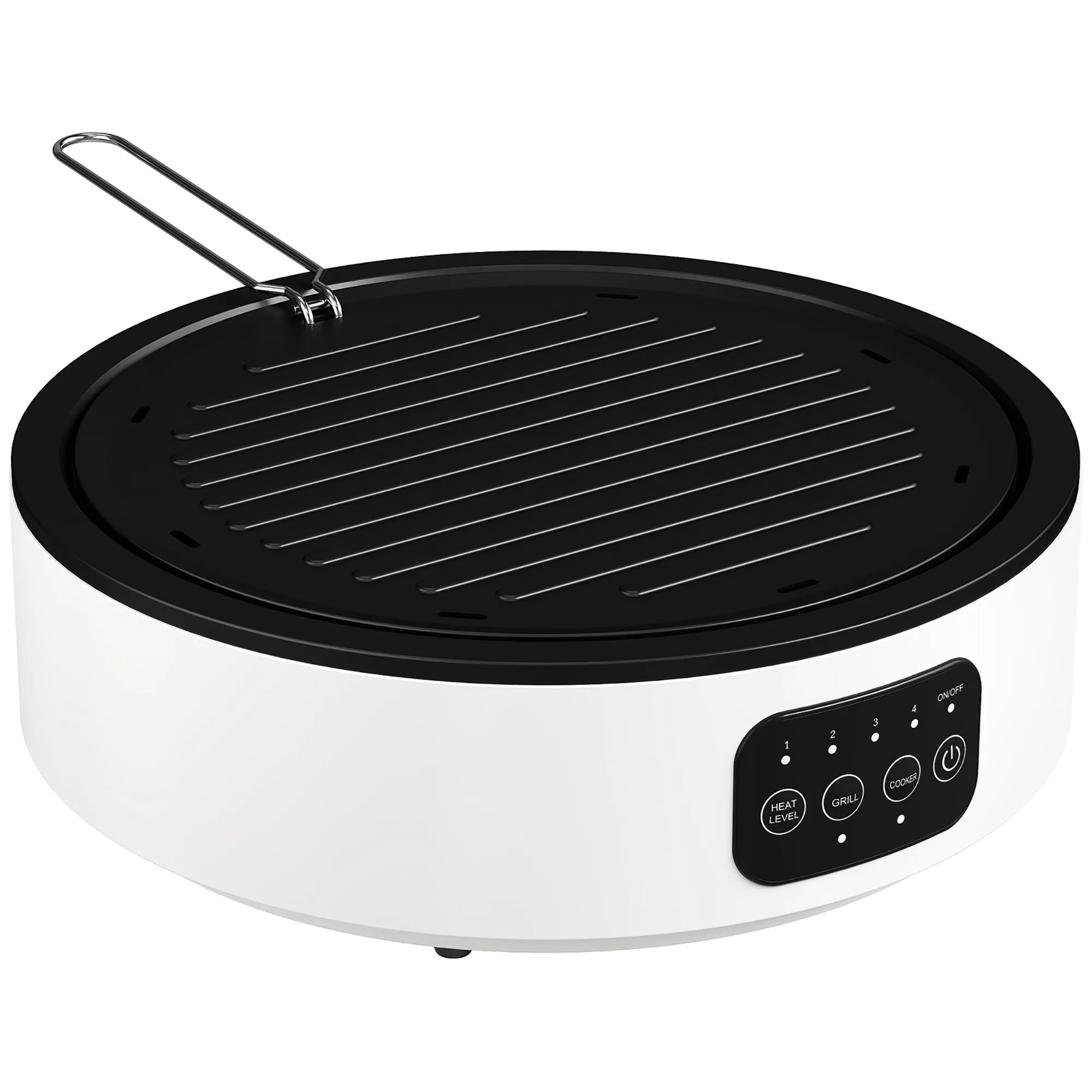 Dual-Keramische Kookplaat, 2-in-1 Ontwerp, Voor Koken En Grillen, 2000W, 4 Warmteniveaus, LED-display, Vetopvangbak, Wit