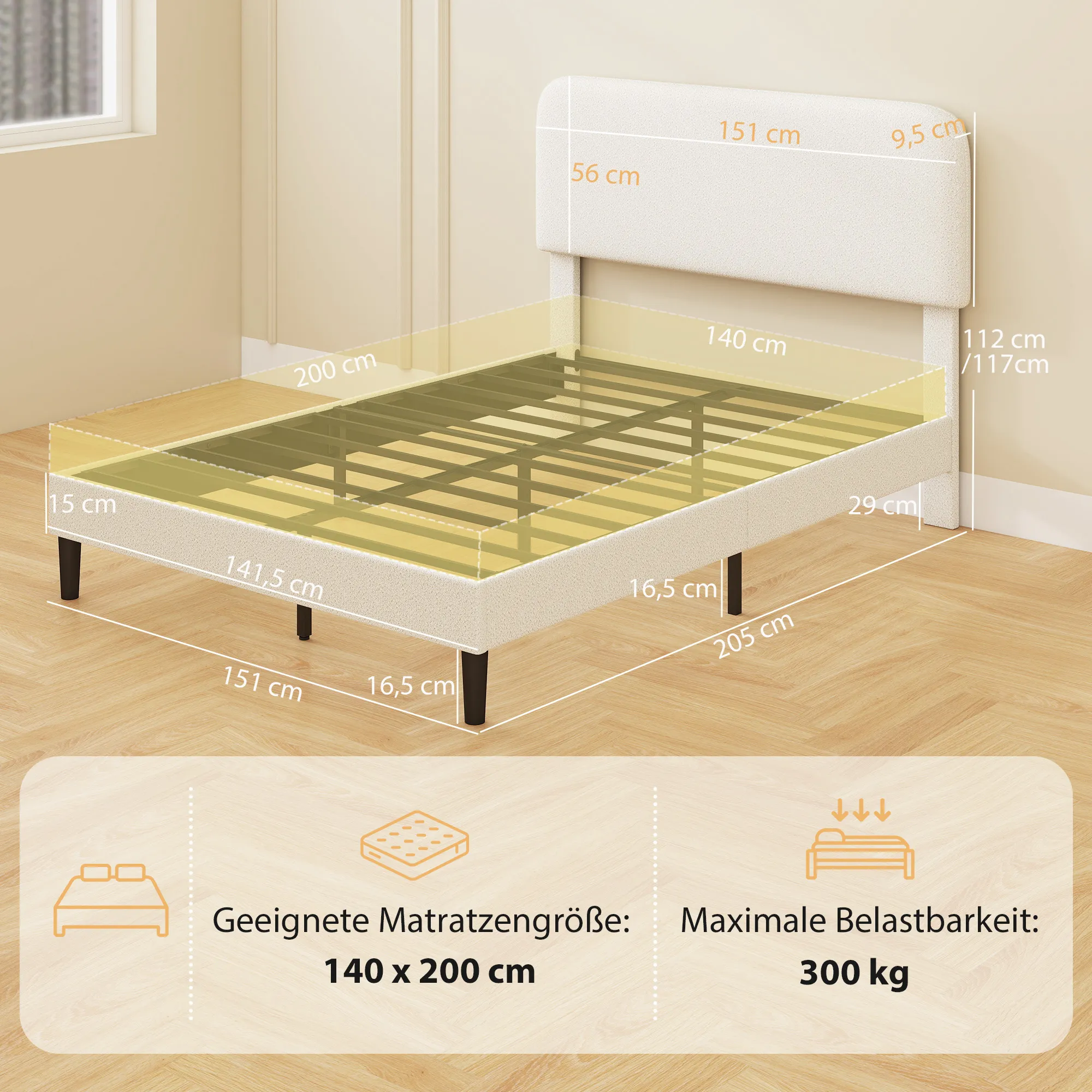 - Geschikte matrasmaat: 140B x 200L cm