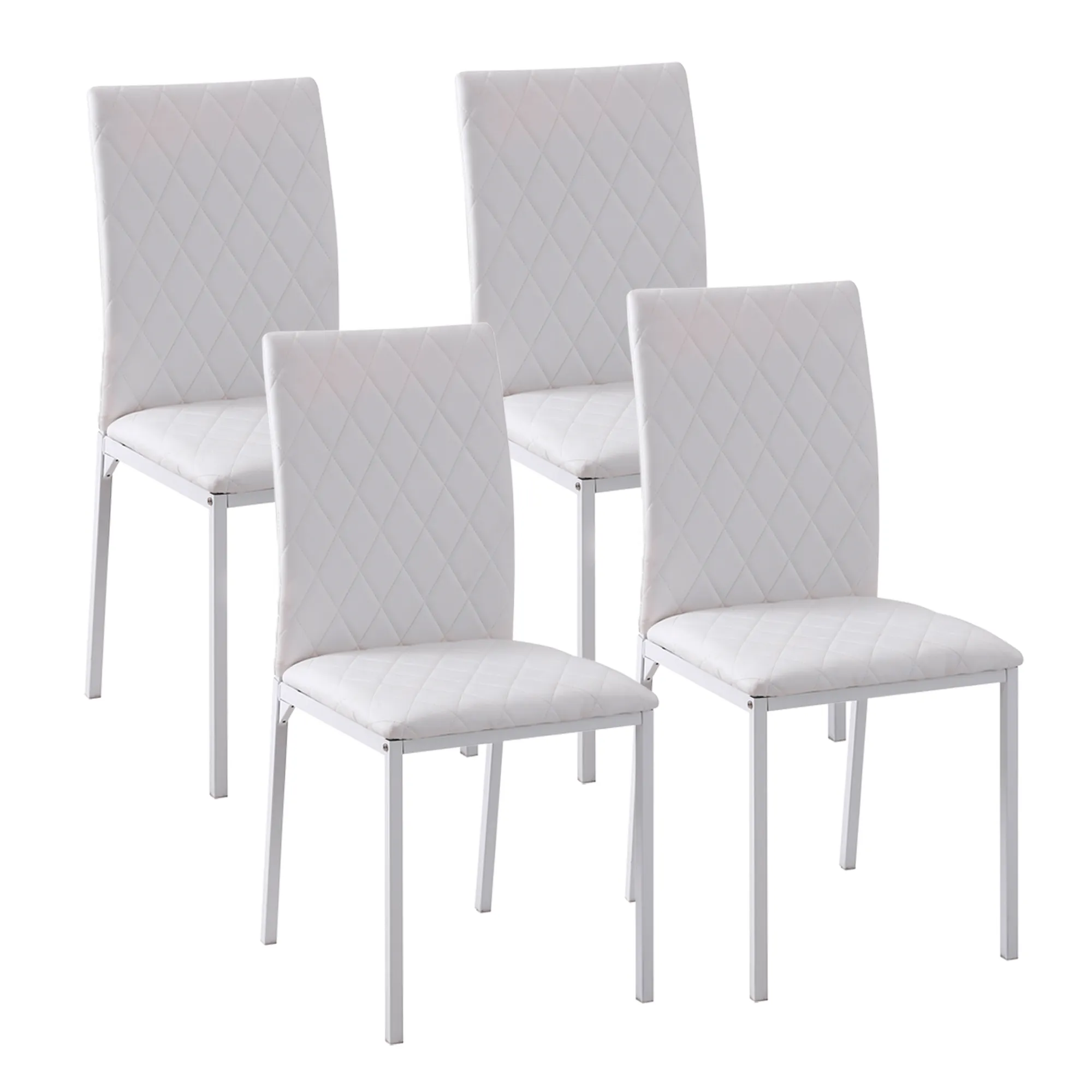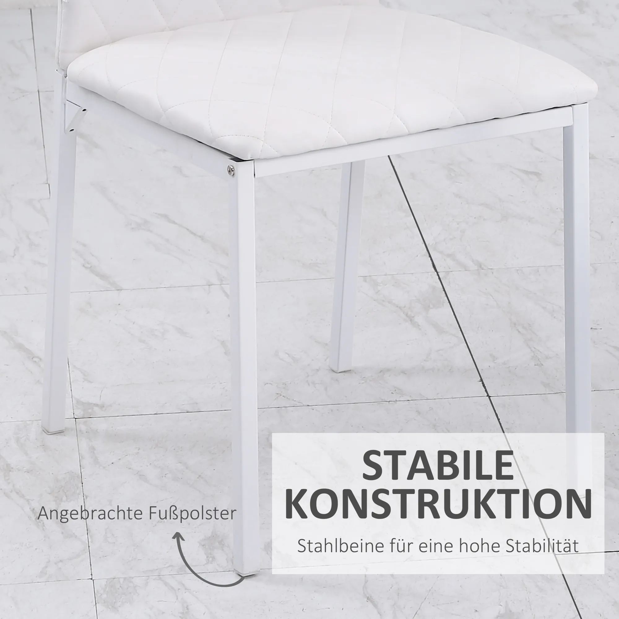 Met de keukenstoelset van TRUUSK creëer je eenvoudig extra zitruimte voor al je gasten. Deze set bestaat uit vier moderne stoelen met een hoge rugleuning voor optimale ondersteuning. De gestoffeerde zitting met kunstleren bekleding zorgt voor maximaal comfort, terwijl het metalen frame de eetkamerstoelen robuust maakt voor dagelijks gebruik. Bovendien zijn de stoelen voorzien van vloerbeschermers om krassen te voorkomen.