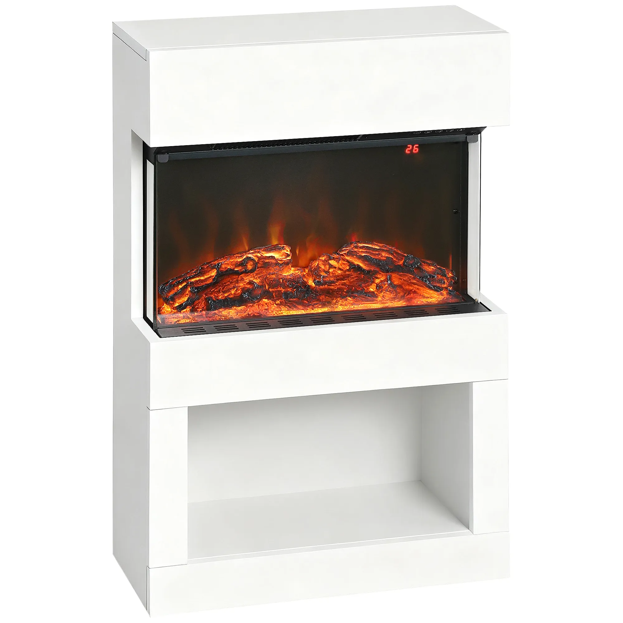 Elektrische Haard, 2 Verwarmingsstanden, 6 Vlamkleuren, Thermostaat, Afstandsbediening, Wit