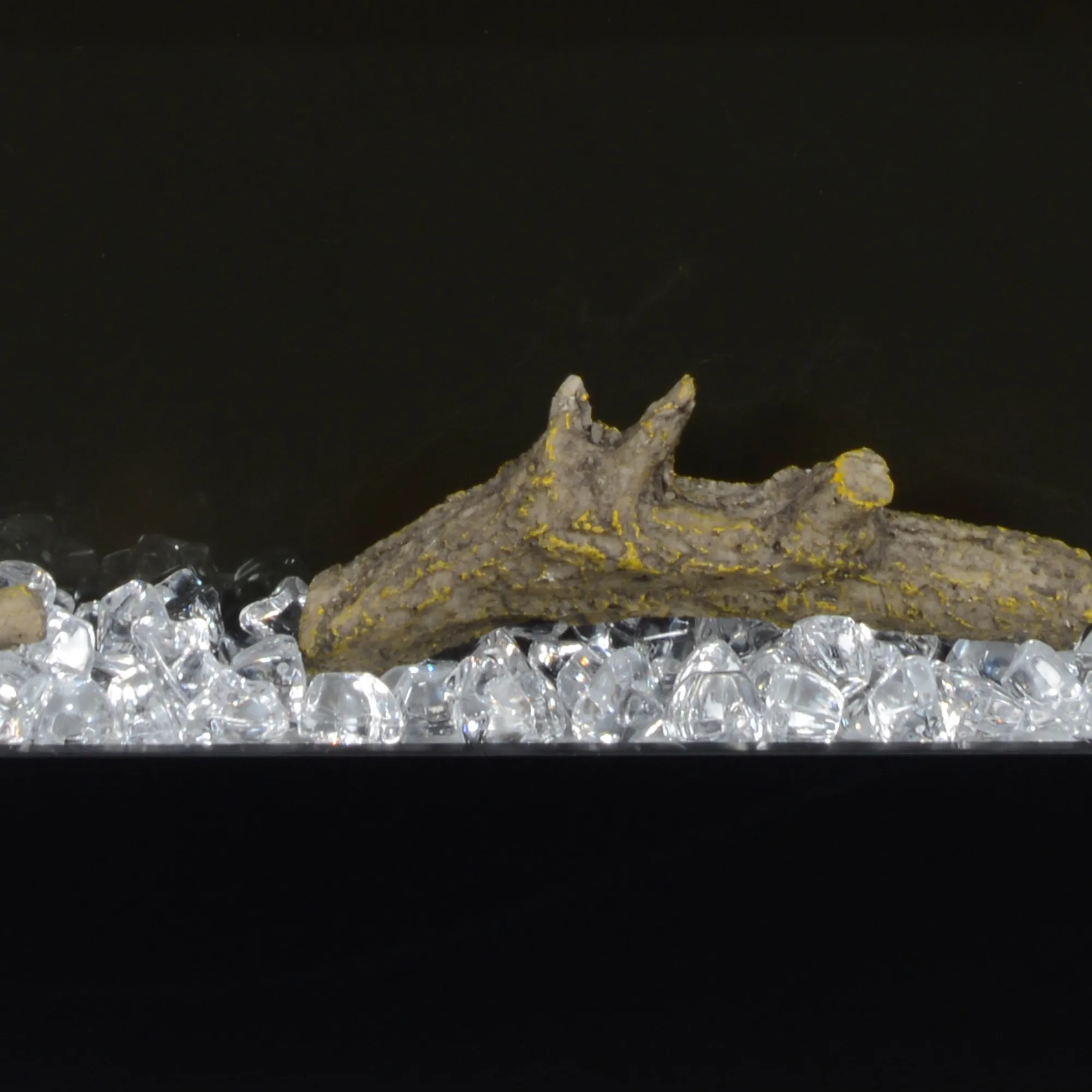 - Sfeervol design: imiteert traditionele haard esthetiek met brandhoutblokken en kristallen