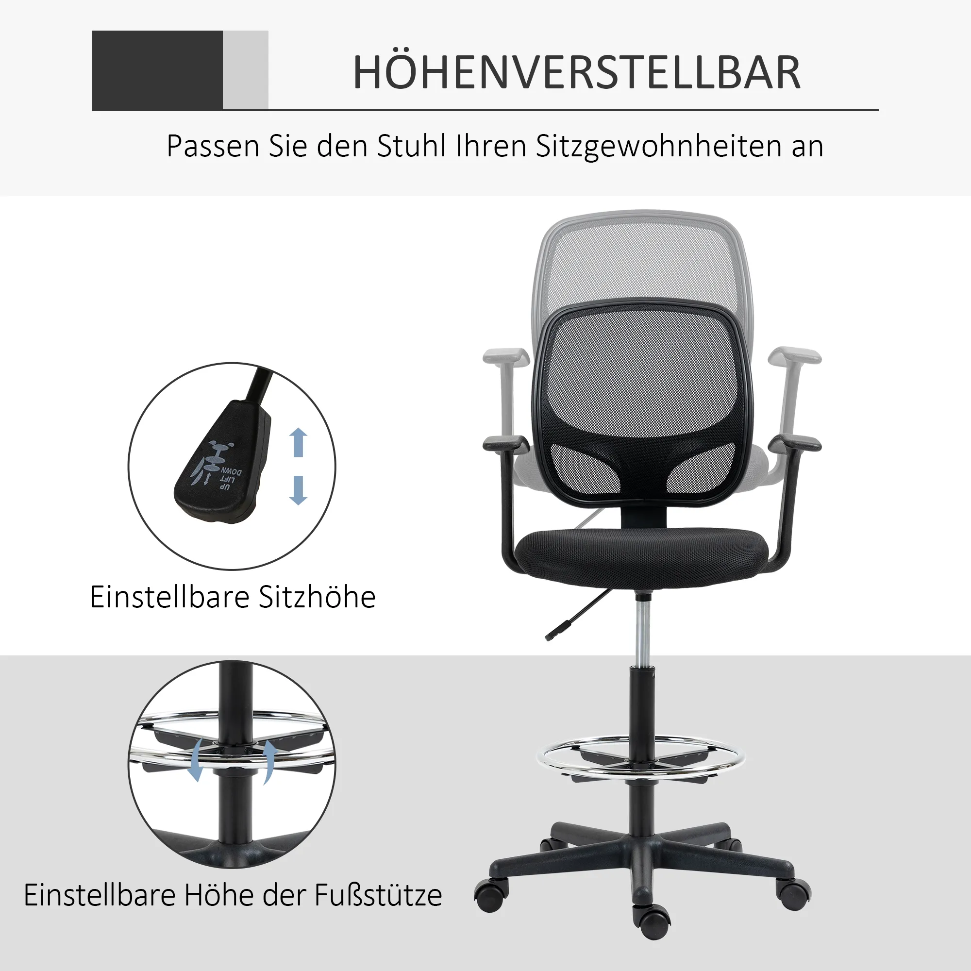 • Verstelbaar: in hoogte verstelbaar en met voetsteun voor extra comfort
