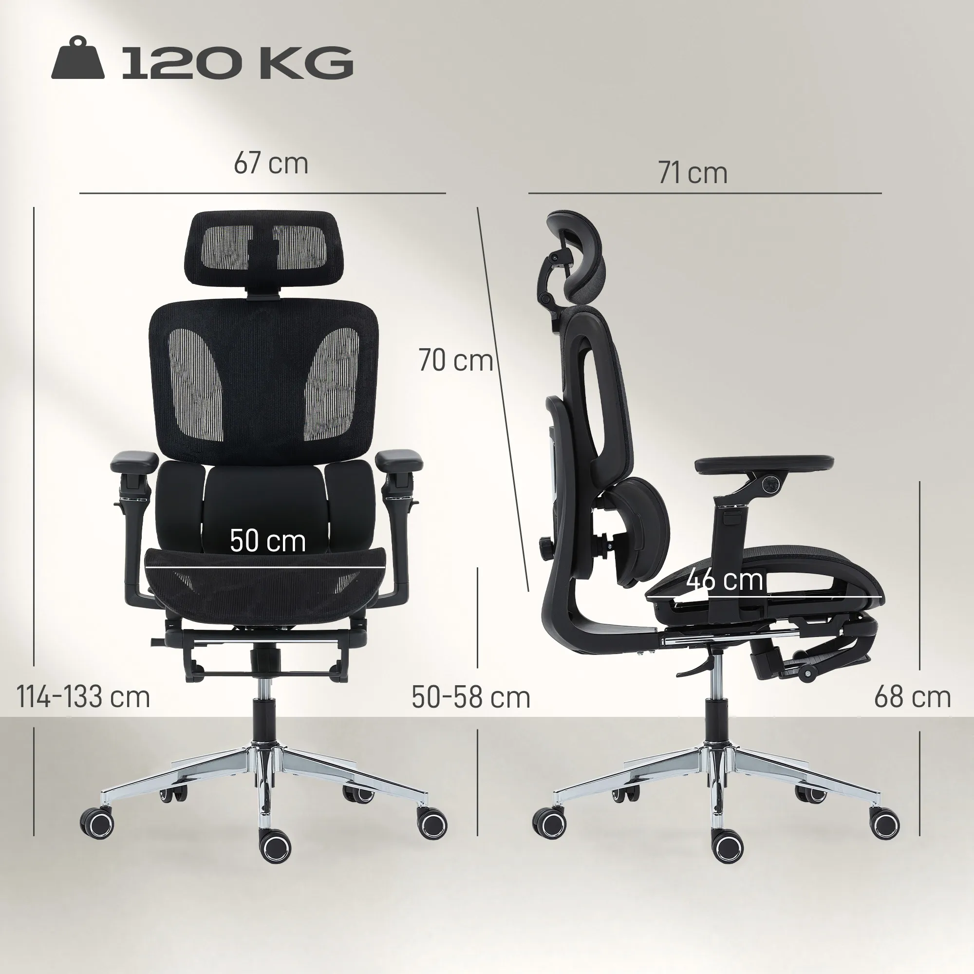 - Robuuste stabiliteit: stevige metalen basis die tot 120 kg ondersteunt