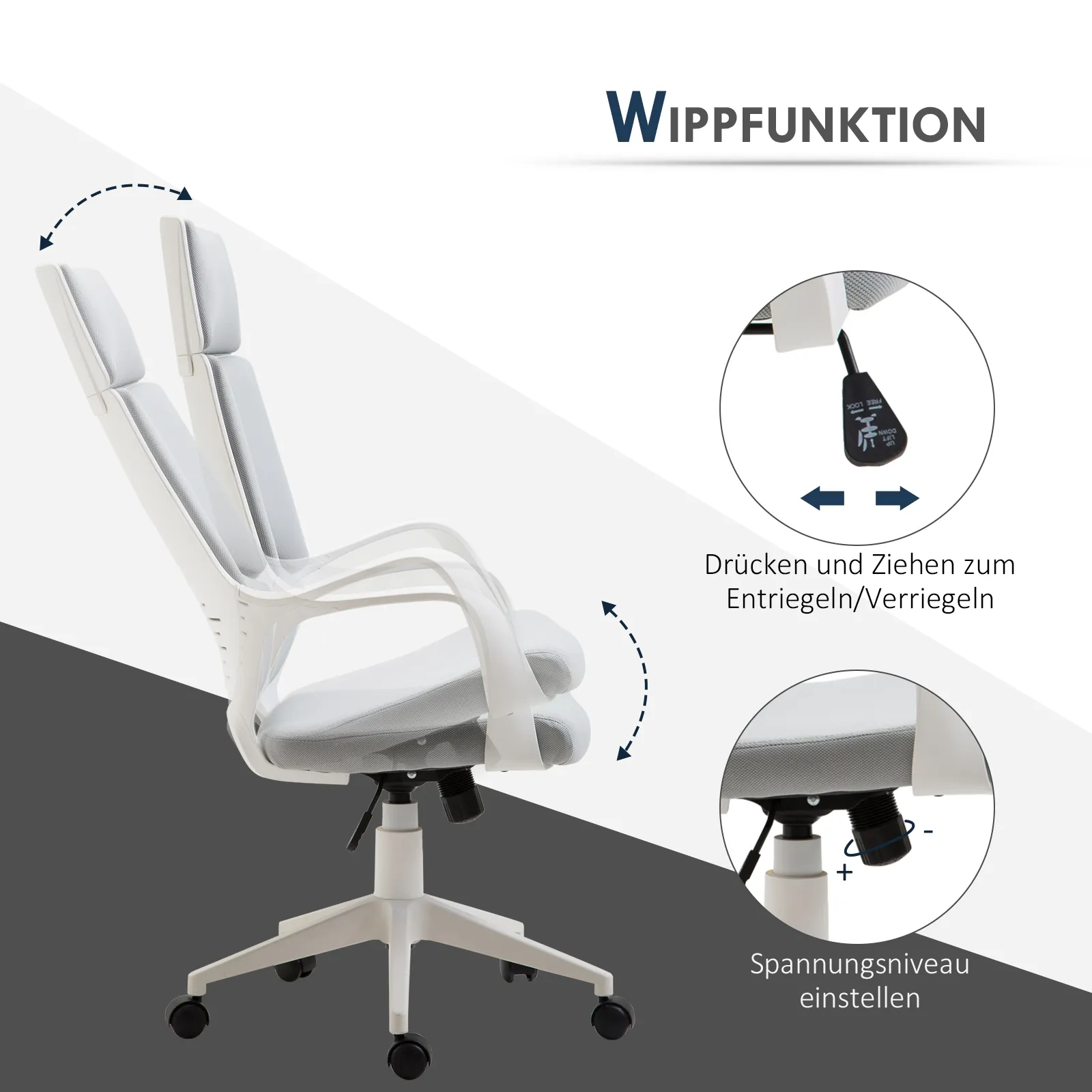 Op zoek naar een comfortabele en stijlvolle bureaustoel voor jouw werkplek? Dan is de ergonomische bureaustoel precies wat je nodig hebt. Met zijn hoge rugleuning, dikke bekleding en ademende netstof biedt deze stoel uitstekend zitcomfort, zodat je comfortabel kunt werken. De bureaustoel is in hoogte verstelbaar en heeft een kantelfunctie voor ontspannen pauzes. Dankzij de soepel lopende wielen kun je gemakkelijk manoeuvreren, ideaal voor zowel het thuiskantoor als stijlvolle kantooromgevingen.
