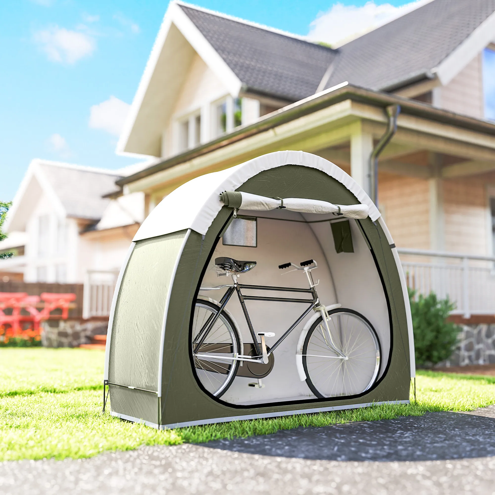 Ontdek de veelzijdigheid van de [BRAND NAME] fietsenstalling! Ruim genoeg om 2 fietsen te huisvesten, biedt deze fietsopslagtent ook plaats voor je tuingereedschap en seizoensgebonden decoratie. Gemaakt van een 210D Oxford-stof dak met zilveren en PU-coating voor UPF50+ bescherming en 3000 mm waterdichtheid, biedt de tentgarage betrouwbare bescherming in een licht, gemakkelijk hanteerbaar ontwerp.