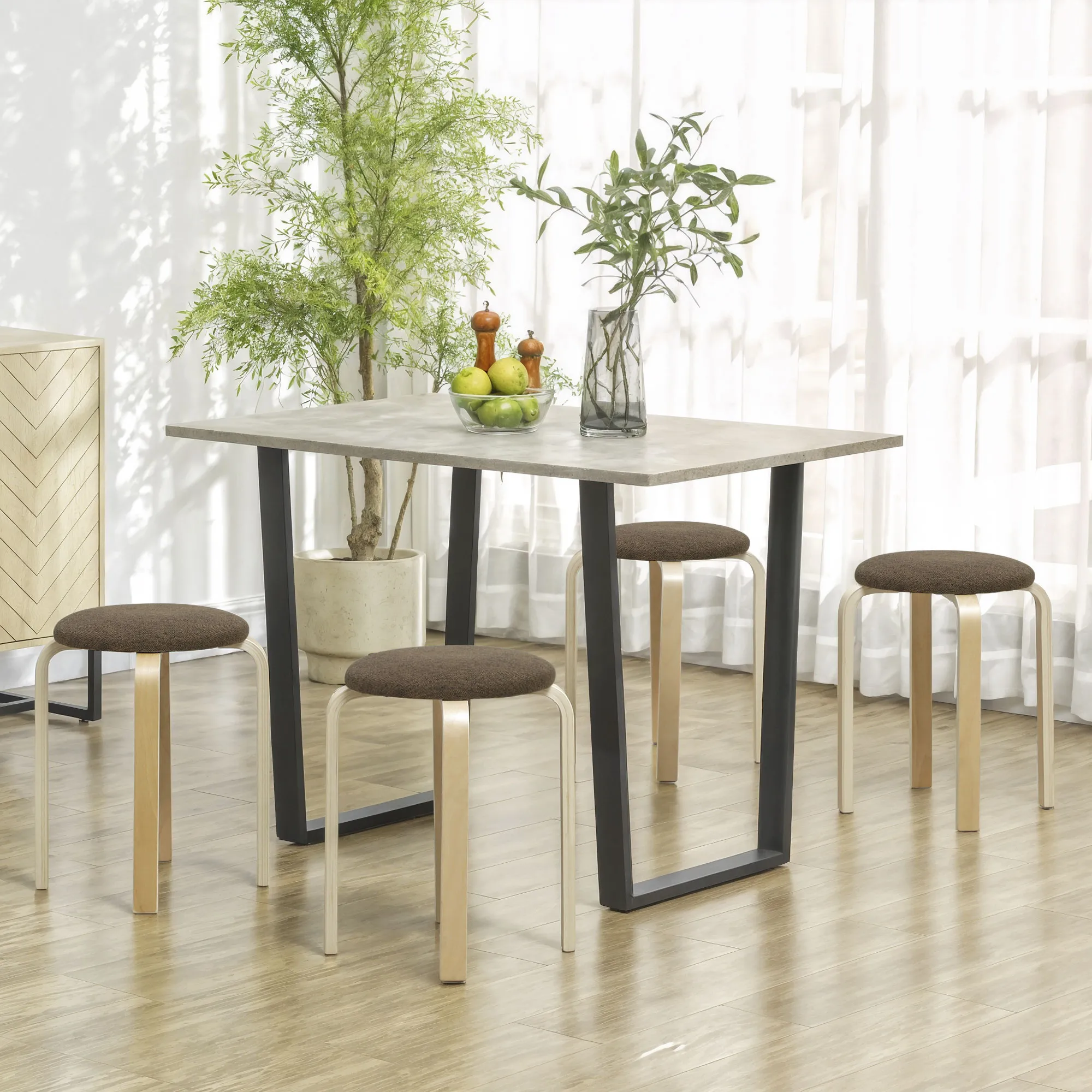 Gestoffeerde Krukken In Set Van 4, Stapelbaar, Gelakte Oppervlakte, Houten Poten, Bruin