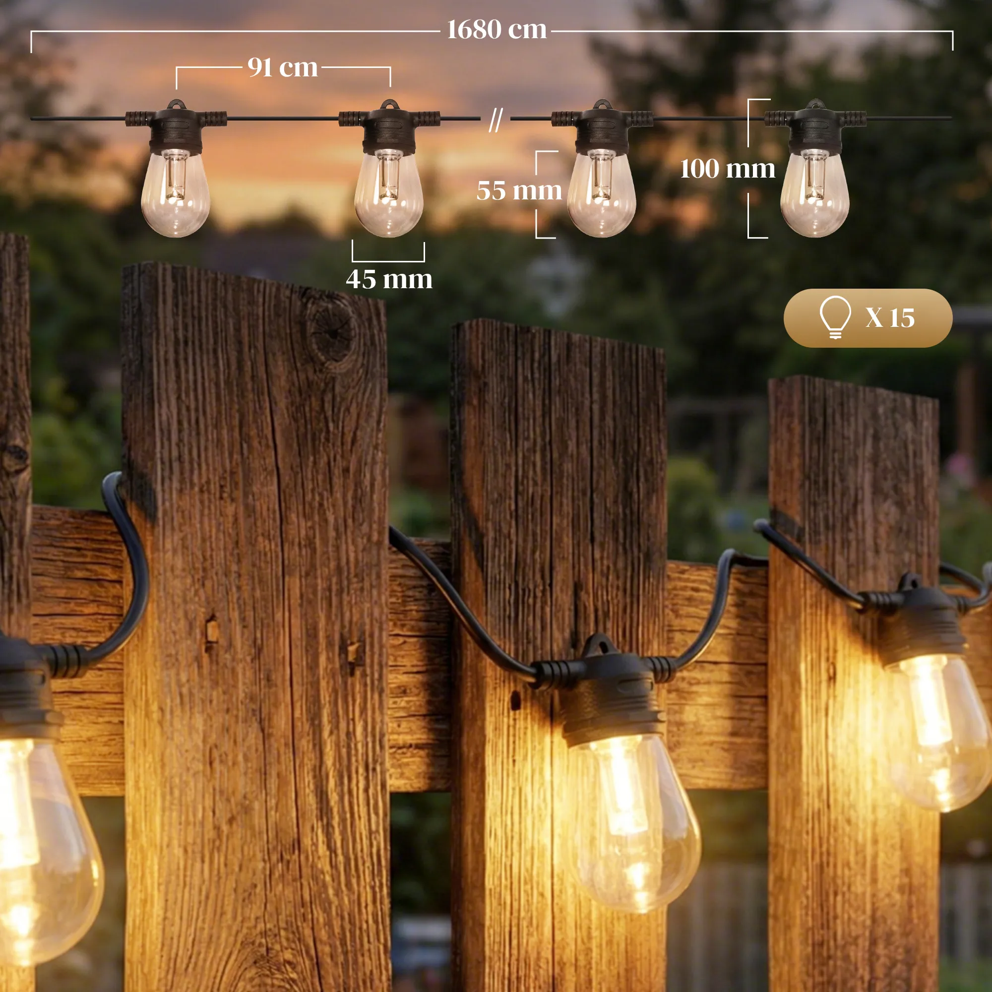 Wil je jouw terras ‘s avonds tot leven brengen? Met de [BRAND NAME] LED-lichtslinger creëer je 2700K warm licht voor een rustige sfeer of levendige feestkleuren met slechts een druk op de afstandsbediening. De 16,8 meter lange lichtgordijn is perfect voor elk formaat terras, maar kan ook worden uitgebreid om grotere gebieden te verlichten en de ideale ambiance te creëren.
