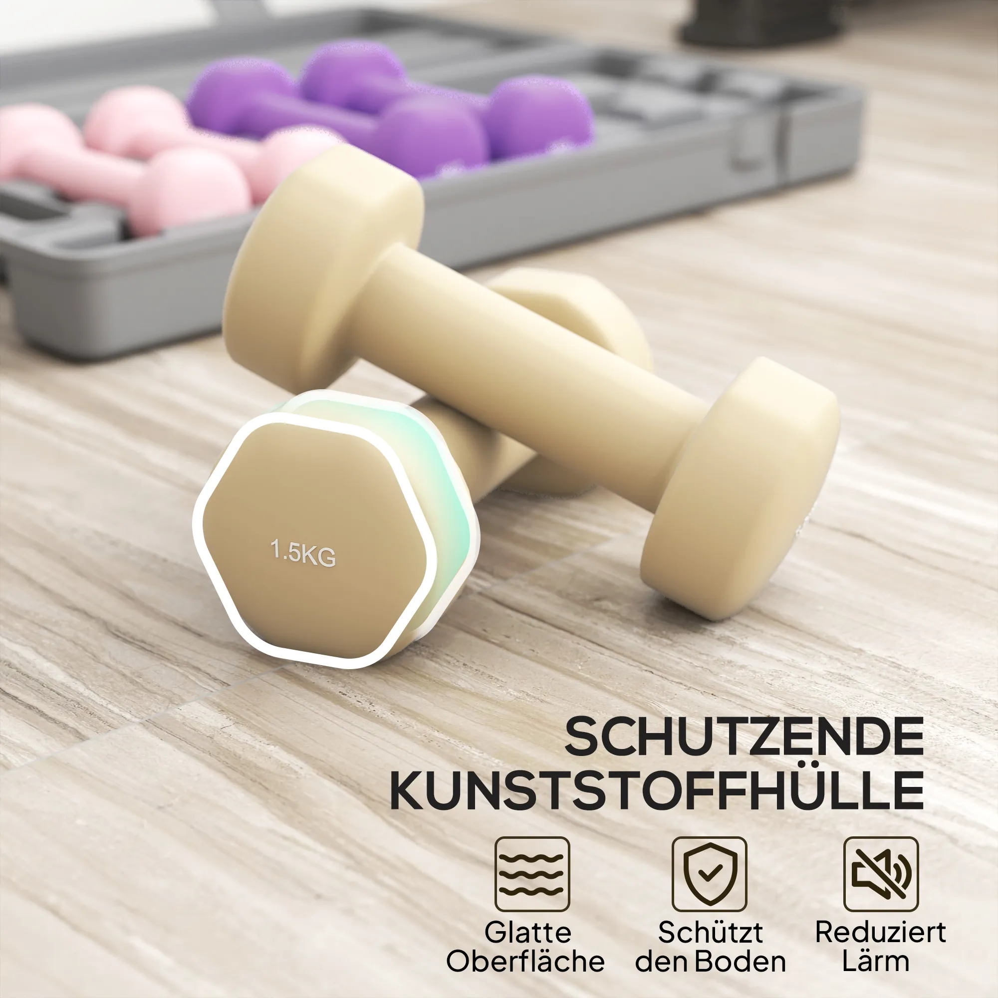 • Gewicht: 2 x 0,5 kg, 2 x 1 kg, 2 x 1,5 kg